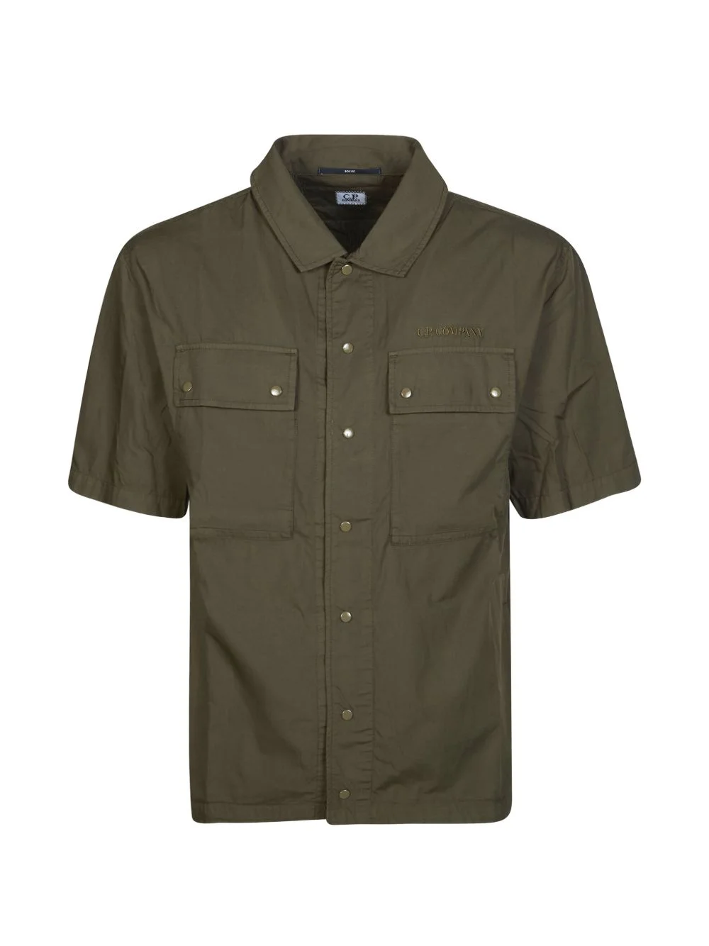 buttoned short-sleeve shirt jacket Highlights - Sage green - Front button fastening - Buttoned flap pockets - Classic collar - Short sleeves - Tonal stitching Imported Composition Fabric 100% Washing instructions Read Manufacturer Guidelines