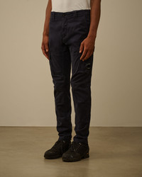Cargo pants crafted in smooth, soft-textured stretch cotton. The pants feature C.P. Company’s iconic Lens, button and zip fastening, belt loops, side pockets, and cargo flap snap pockets. Complete with back welt snap pockets with an applied label. Garment dyed. Ergonomic fit. - Button and zip fastening - Belt loops - Side pockets - Cargo flap snap pockets with Lens detail - Back welt snap pockets with applied label - Garment dyed - Ergonomic fit CARE & COMPOSITION Care - Wash max 30°C - Mild process - Do not bleach - Do not tumble dry - Ironing maximum temperature 110°C - without steam - Do not dry clean - Line dry - Wash separately - Wash inside out - Iron inside out - Remove detachable accessories before washing Composition - External fabric: 98% Cotton, 2% Elastane / Spandex SIZE & FITTING - Fits true to size, take your normal size - Model is 186 cm-6' 1"/ 88-91 cm waist and is wearing a size 48 PRODUCT PASSPORT PRODUCT - Weaving: Turkiye - Dyeing: Tunisia - Confection: Tunisia PACKAGING - Minimum percentage of recycled materials 70%