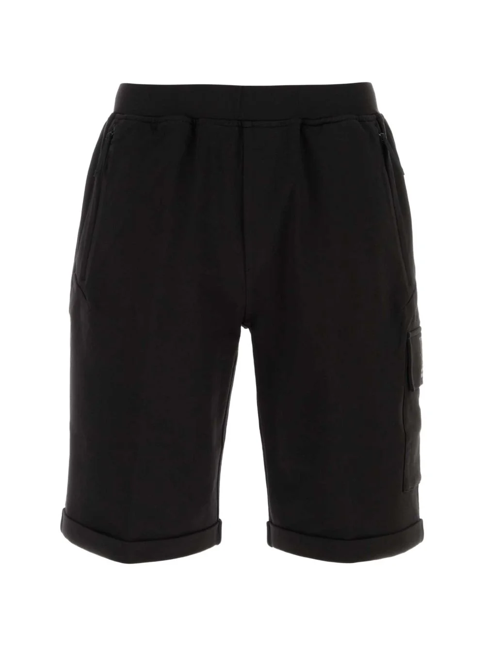 cargo-pocket bermuda shorts Highlights - Black - Rolled hem - Side flap pocket - Elasticated waistband Imported Composition Cotton 95%, Spandex/Elastane 5% Washing instructions Read Manufacturer Guidelines