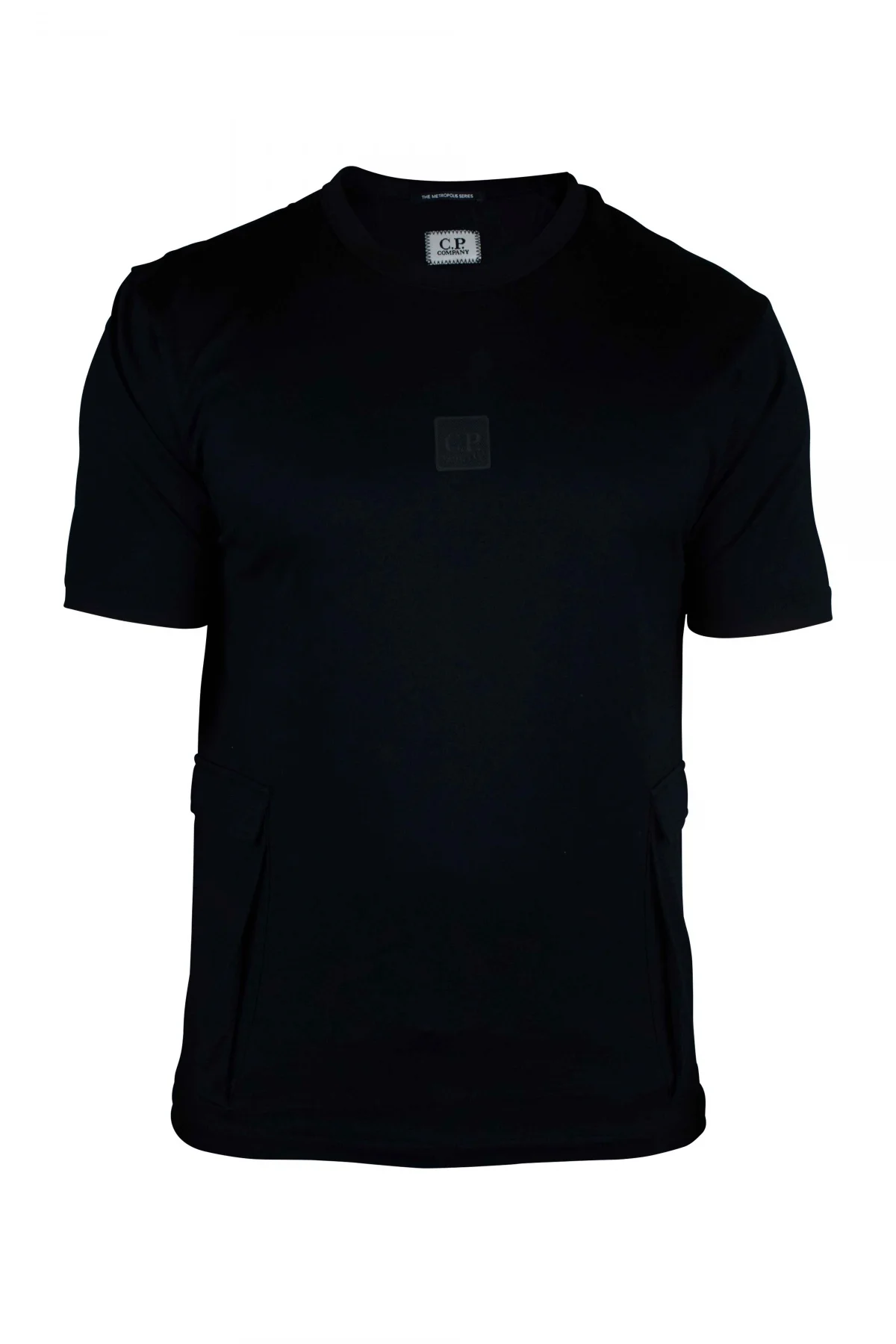 Navy blue C.P Company T-shirt. Metropolis Series collection. Logo patch on chest. Two side pockets. Short sleeves. Crew neck. 100% cotton.