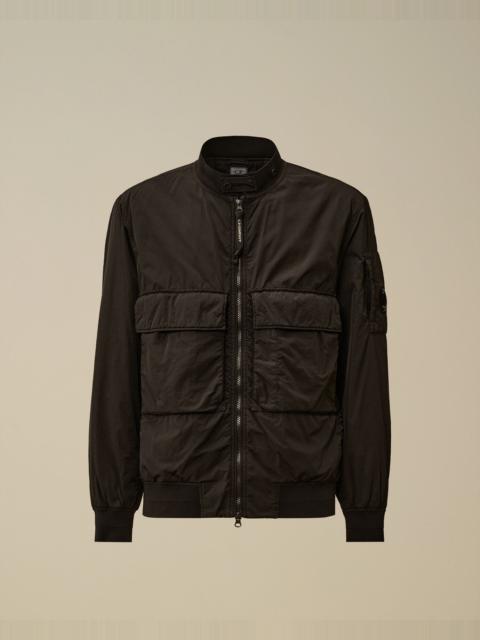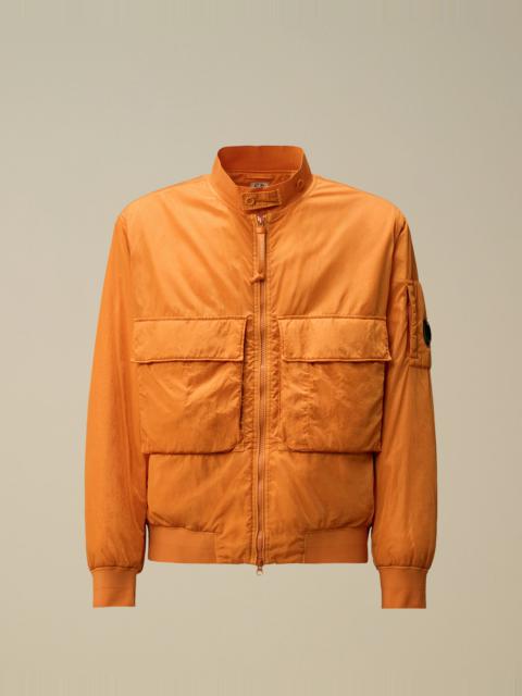Bomber jacket crafted in Chrome-R, a 100% recycled, shiny multifilament nylon. Made from production scraps, reprocessed into a new fibre certified by the Global Recycled Standard (GRS). The jacket features a ribbed collar with a button placket, a two-way full zip fastening, and front and side flap snap pockets. Finished with C.P. Company’s iconic Lens and ribbed cuffs and hem. Wadding padded for added warmth. Garment dyed with anti-drop treatment. Regular fit. - Ribbed collar with button placket - Two-way full zip fastening - Front and side flap snap pockets - Lens detail - Ribbed cuffs and hem - Garment dyed - Wadding padded - Regular fit CARE & COMPOSITION Care - Wash max 30°C - Mild process - Do not bleach - Do not tumble dry - Ironing maximum temperature 110°C - without steam - Do not dry clean - Line dry - Wash separately - Wash inside out - Do not soak - Remove detachable accessories before washing Composition - External fabric: 100% Polyamide / Nylon - Lining: 100% Polyamide / Nylon - Padding (Fiber): 100% Polyester SIZE & FITTING - Fits true to size, take your normal size - Model is 186 cm-6' 1" / 98-103 cm chest and is wearing a size L PRODUCT PASSPORT PRODUCT - Weaving: China - Dyeing: China - Confection: China - Product contains at least 55% of recycled material - Releases plastic microfibers into the environment during washing PACKAGING - Minimum percentage of recycled materials 70%