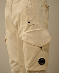 Cargo pants crafted in smooth, soft-textured stretch cotton. The pants feature C.P. Company’s iconic Lens, button and zip fastening, belt loops, side and cargo flap snap pockets. Finished with back welt flap snap pockets with an applied label. Garment dyed. Ergonomic fit. - Button and zip fastening - Belt loops - Side flap snap pockets - Cargo flap snap pockets with Lens detail - Back welt flap snap pockets with applied label - Garment dyed - Ergonomic fit CARE & COMPOSITION Care - Wash max 30°C - Mild process - Do not bleach - Do not tumble dry - Ironing maximum temperature 110°C - without steam - Do not dry clean - Line dry - Wash separately - Wash inside out - Iron inside out - Remove detachable accessories before washing Composition - External fabric: 98% Cotton, 2% Elastane / Spandex SIZE & FITTING - Fits true to size, take your normal size - Model is 186 cm-6' 1"/ 88-91 cm waist and is wearing a size 48 PRODUCT PASSPORT PRODUCT - Weaving: Turkiye - Dyeing: Tunisia - Confection: Tunisia PACKAGING - Minimum percentage of recycled materials 70%
