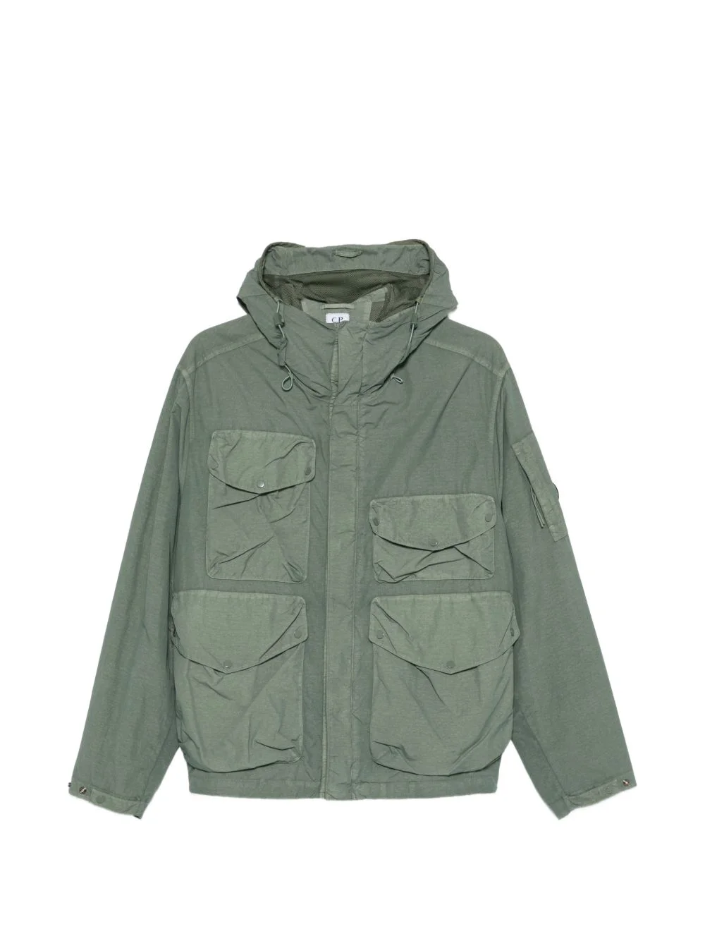 chest-pocket hooded jacket Highlights - Olive green - Multiple flap pockets - Zip fastening - Adjustable drawstring hood - Long sleeves - Elasticated hem - C.p. company suggests removing any detachable accessories before washing. Imported Composition Polyamide 100% Washing instructions Machine Wash