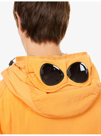 PRODUCT DETAILS - C.P. Company waterproof jacket - 100% polyamide - Concealed zip and press-stud fastening at front - Drawstring hood, branded goggle-lens detail at hood, long sleeves with adjustable cuffs, four flap patch pockets at front, all-over crinkle effect - Machine wash mild - Model is 6ft 2in/1.88m and wears a size medium - Lightweight, non-stretch Ref: R04486686