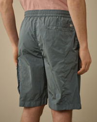 Cargo shorts crafted in Chrome-R, a 100% recycled, shiny multifilament nylon. Made from production scraps reprocessed into a new fibre. Global Recycled Standard certified (GRS). Garment dyed anti-drop treated. Lens detail. Regular fit. - Adjustable drawstring waistband - Side pockets - Cargo flap snap pocket - Lens detail - Back welt pocket with applied logo label - Garment dyed - Regular fit CARE & COMPOSITION Care - Wash max 30°C - Mild process - Do not bleach - Do not tumble dry - Ironing maximum temperature 110°C - without steam - Do not dry clean - Line dry - Wash inside out - Remove detachable accessories before washing Composition - External fabric: 100% Polyamide / Nylon SIZE & FITTING - Fits true to size, take your normal size - Model is 186 cm-6' 1" / 88-91 cm waist and is wearing a size 48 PRODUCT PASSPORT PRODUCT - Weaving: China - Dyeing: China - Confection: China - Product contains at least 95% of recycled material - Releases plastic microfibers into the environment during washing PACKAGING - Minimum percentage of recycled materials 70%