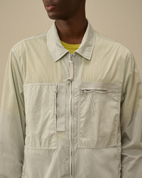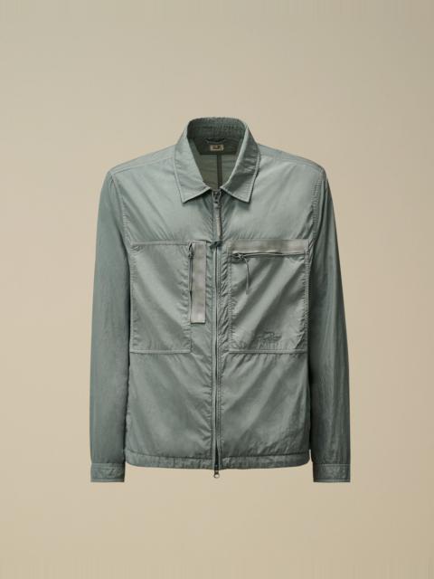 Full zip overshirt crafted in Chrome-R, a 100% regenerated, shiny multifilament nylon. Made from production scraps reprocessed into a new fibre. Global Recycled Standard certified (GRS). Garment dyed anti-drop treated. Lens detail. Regular fit. - Classic collar - Two-way full zip fastening - Chest zip pockets with embroidered logo detail - Side flap snap pockets - Adjustable button cuffs - Adjustable drawstring hem - Garment dyed - Regular fit CARE & COMPOSITION CARE - Wash max 30°C - Mild process - Do not bleach - Do not tumble dry - Ironing maximum temperature 110°C - without steam - Do not dry clean - Line dry - Wash inside out COMPOSITION - External fabric: 100% Polyamide / Nylon SIZE & FITTING - Fits true to size, take your normal size - Model is 186 cm-6' 1" / 98-103 cm chest and is wearing a size L