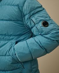 Down jacket crafted in Chrome-R, a 100% recycled, shiny multifilament nylon. Made from production scraps, reprocessed into a new fibre certified by the Global Recycled Standard (GRS). The jacket features a concealable zip hood, a two-way full zip fastening with a flap snap closure, and side zip pockets. Finished with C.P. Company’s iconic Lens, ribbed cuffs, and an adjustable drawstring hem. Garment dyed with anti-drop treatment. Regular fit. - Concealable zip hood - Two-way full zip fastening with flap snap closure - Side zip pockets - Lens detail - Ribbed cuffs - Adjustable drawstring hem - Garment dyed - Regular fit CARE & COMPOSITION Care - Wash max 30°C - Mild process - Do not bleach - Do not tumble dry - Ironing maximum temperature 110°C - without steam - Do not dry clean - Line dry - Wash separately - Wash inside out - Remove detachable accessories before washing Composition - External fabric: 100% Polyamide / Nylon - Lining: 100% Polyamide / Nylon - Padding (Fiber): 100% Polyester - Padding (Feather): [194gr. - 90% ] 90% White duck down, 10% Feather SIZE & FITTING - Fits true to size, take your normal size - Model is 186 cm-6' 1" / 98-103 cm chest and is wearing a size L PRODUCT PASSPORT PRODUCT - Weaving: China - Dyeing: China - Confection: China - Product contains at least 55% of recycled material - Releases plastic microfibers into the environment during washing PACKAGING - Minimum percentage of recycled materials 70%