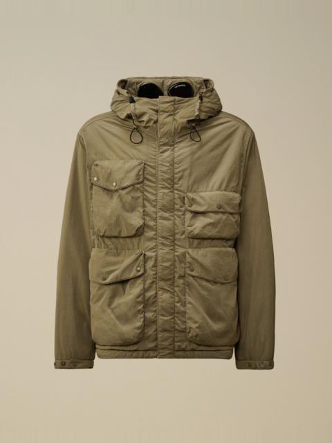 Goggle jacket crafted in Chrome-R, a 100% recycled, shiny multifilament nylon. Made from production scraps, reprocessed into a new fibre certified by the Global Recycled Standard (GRS). The jacket features C.P. Company’s iconic Goggle hood, a hidden two-way full zip fastening with a flap snap closure, and front flap snap pockets. Adjustable snap cuffs and a drawstring hem offer a custom fit. Wadding padded for extra insulation. Garment dyed with anti-drop treatment. Regular fit. - Adjustable Goggle hood - Hidden two-way full zip fastening with flap snap closure - Front flap snap pockets - Adjustable snap cuffs - Adjustable drawstring hem - Garment dyed - Wadding padded - Regular fit CARE & COMPOSITION Care - Wash max 30°C - Mild process - Do not bleach - Do not tumble dry - Ironing maximum temperature 110°C - without steam - Do not dry clean - Line dry - Wash separately - Wash inside out - Remove detachable accessories before washing Composition - External fabric: 100% Polyamide / Nylon - Lining: 100% Polyamide / Nylon - Padding (Fiber): 100% Polyester SIZE & FITTING - Fits true to size, take your normal size - Model is 186 cm-6' 1" / 98-103 cm chest and is wearing a size L PRODUCT PASSPORT PRODUCT - Weaving: China - Dyeing: China - Confection: China - Product contains at least 45% of recycled material - Releases plastic microfibers into the environment during washing PACKAGING - Minimum percentage of recycled materials 70%