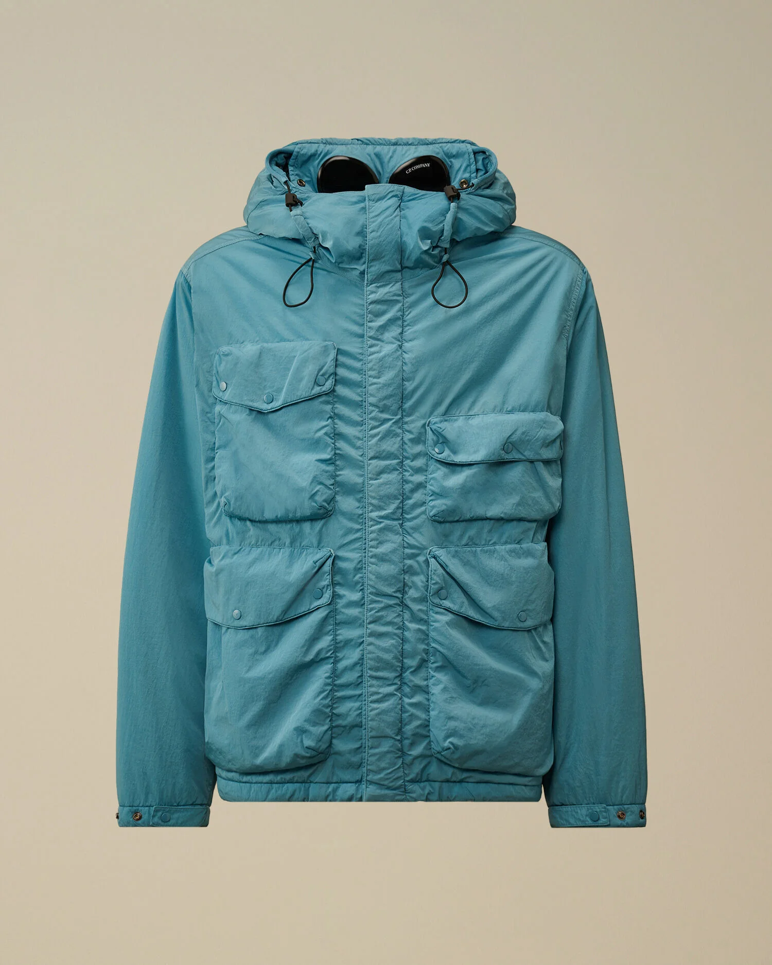 Goggle jacket crafted in Chrome-R, a 100% recycled, shiny multifilament nylon. Made from production scraps, reprocessed into a new fibre certified by the Global Recycled Standard (GRS). The jacket features C.P. Company’s iconic Goggle hood, a hidden two-way full zip fastening with a flap snap closure, and front flap snap pockets. Adjustable snap cuffs and a drawstring hem offer a custom fit. Wadding padded for extra insulation. Garment dyed with anti-drop treatment. Regular fit. - Adjustable Goggle hood - Hidden two-way full zip fastening with flap snap closure - Front flap snap pockets - Adjustable snap cuffs - Adjustable drawstring hem - Garment dyed - Wadding padded - Regular fit CARE & COMPOSITION Care - Wash max 30°C - Mild process - Do not bleach - Do not tumble dry - Ironing maximum temperature 110°C - without steam - Do not dry clean - Line dry - Wash separately - Wash inside out - Remove detachable accessories before washing Composition - External fabric: 100% Polyamide / Nylon - Lining: 100% Polyamide / Nylon - Padding (Fiber): 100% Polyester SIZE & FITTING - Fits true to size, take your normal size - Model is 186 cm-6' 1" / 98-103 cm chest and is wearing a size L PRODUCT PASSPORT PRODUCT - Weaving: China - Dyeing: China - Confection: China - Product contains at least 45% of recycled material - Releases plastic microfibers into the environment during washing PACKAGING - Minimum percentage of recycled materials 70%