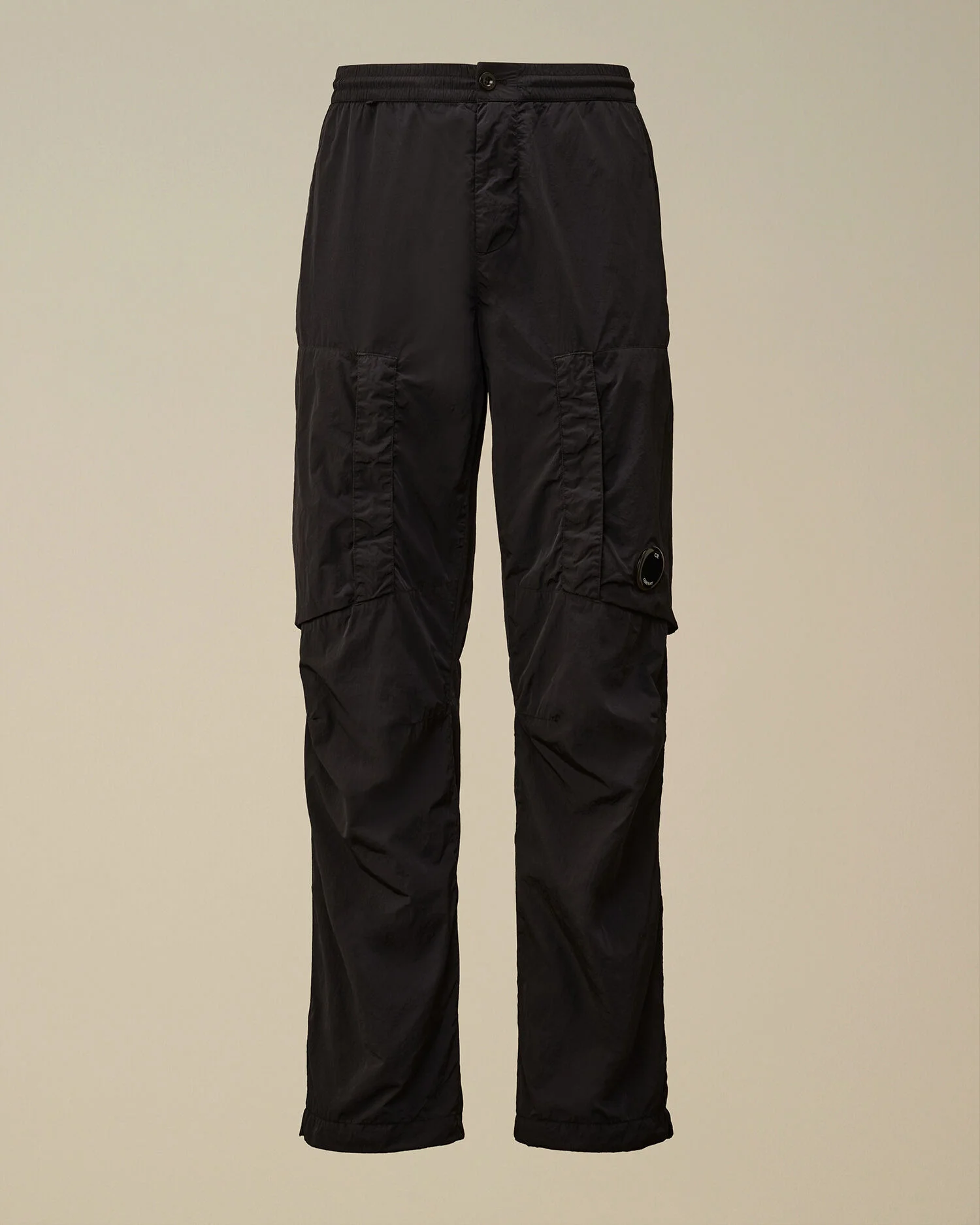 Cargo pants crafted in Chrome-R, a 100% recycled, shiny multifilament nylon. Made from production scraps, reprocessed into a new fibre certified by the Global Recycled Standard (GRS). The pants feature C.P. Company’s iconic Lens, button and zip fastening, adjustable drawstring waistband, and side and back pockets. Mesh lining and garment dyed with anti-drop treatment. Regular fit. - Adjustable drawstring waistband - Button and zip fastening - Side pockets - Cargo flap snap pockets with Lens detail - Back flap snap pocket with applied label - Adjustable drawstring hems - Mesh lining - Garment dyed - Regular fit CARE & COMPOSITION Care - Wash max 30°C - Mild process - Do not bleach - Do not tumble dry - Ironing maximum temperature 110°C - without steam - Do not dry clean - Line dry - Iron inside out - Remove detachable accessories before washing Composition - External fabric: 100% Polyamide / Nylon - Lining: 100% Polyamide / Nylon SIZE & FITTING - Fits true to size, take your normal size - Model is 186 cm-6' 1"/ 88-91 cm waist and is wearing a size 48 PRODUCT PASSPORT PRODUCT - Weaving: China - Dyeing: China - Confection: China - Product contains at least 55% of recycled material - Releases plastic microfibers into the environment during washing PACKAGING - Minimum percentage of recycled materials 70%