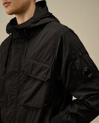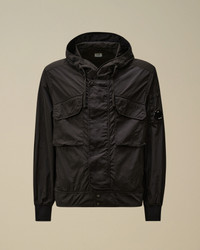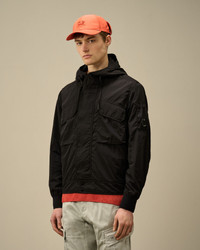 Hooded jacket crafted in Chrome-R, a 100% regenerated, shiny multifilament nylon. Made from production scraps reprocessed into a new fibre. Global Recycled Standard certified (GRS). Garment dyed anti-drop treated. Lens detail. Regular fit. - Adjustable visor hood - Hidden full zip fastening with flap snap closure - Chest flap snap pockets - Lens detail - Elasticated cuffs and back hem - Snap closure on hem - Garment dyed - Regular fit CARE & COMPOSITION CARE - Wash max 30°C - Mild process - Do not bleach - Do not tumble dry - Ironing maximum temperature 110°C - without steam - Do not dry clean - Line dry - Wash inside out - Remove detachable accessories before washing COMPOSITION - External fabric: 100% Polyamide / Nylon SIZE & FITTING - Fits true to size, take your normal size - Model is 186 cm-6' 1" / 98-103 cm chest and is wearing a size L