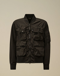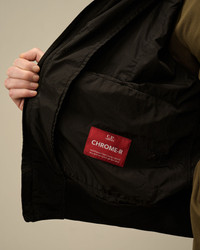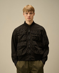 Bomber jacket crafted in Chrome-R, a 100% regenerated, shiny multifilament nylon. Made from production scraps reprocessed into a new fibre. Global Recycled Standard certified (GRS). Garment dyed anti-drop treated. Regular fit. - V-neck - Two-way full zip fastening - Chest embroidered logo detail - Flap snap pockets - Sleeve zip pocket - Elasticated cuffs and hem - Garment dyed - Regular fit CARE & COMPOSITION CARE - Wash max 30°C - Mild process - Do not bleach - Do not tumble dry - Ironing maximum temperature 110°C - without steam - Do not dry clean - Line dry - Wash inside out COMPOSITION - External fabric: 100% Polyamide / Nylon SIZE & FITTING - Fits true to size, take your normal size - Model is 186 cm-6' 1" / 98-103 cm chest and is wearing a size L