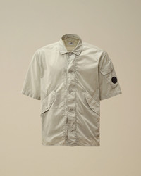 Short sleeve overshirt crafted in Chrome-R, a 100% regenerated, shiny multifilament nylon. Made from production scraps reprocessed into a new fibre. Global Recycled Standard certified (GRS). Garment dyed anti-drop treated. Lens detail. Regular fit. - Classic collar - Hidden two-way zip fastening with button - Side patch flap snap pockets - Sleeve patch flap button pocket with Lens detail - Garment dyed - Regular fit CARE & COMPOSITION CARE - Wash max 30°C - Mild process - Do not bleach - Do not tumble dry - Ironing maximum temperature 110°C - without steam - Do not dry clean - Line dry - Wash inside out - Remove detachable accessories before washing COMPOSITION - External fabric: 100% Polyamide / Nylon SIZE & FITTING - Fits true to size, take your normal size - Model is 186 cm-6' 1" / 98-103 cm chest and is wearing a size L