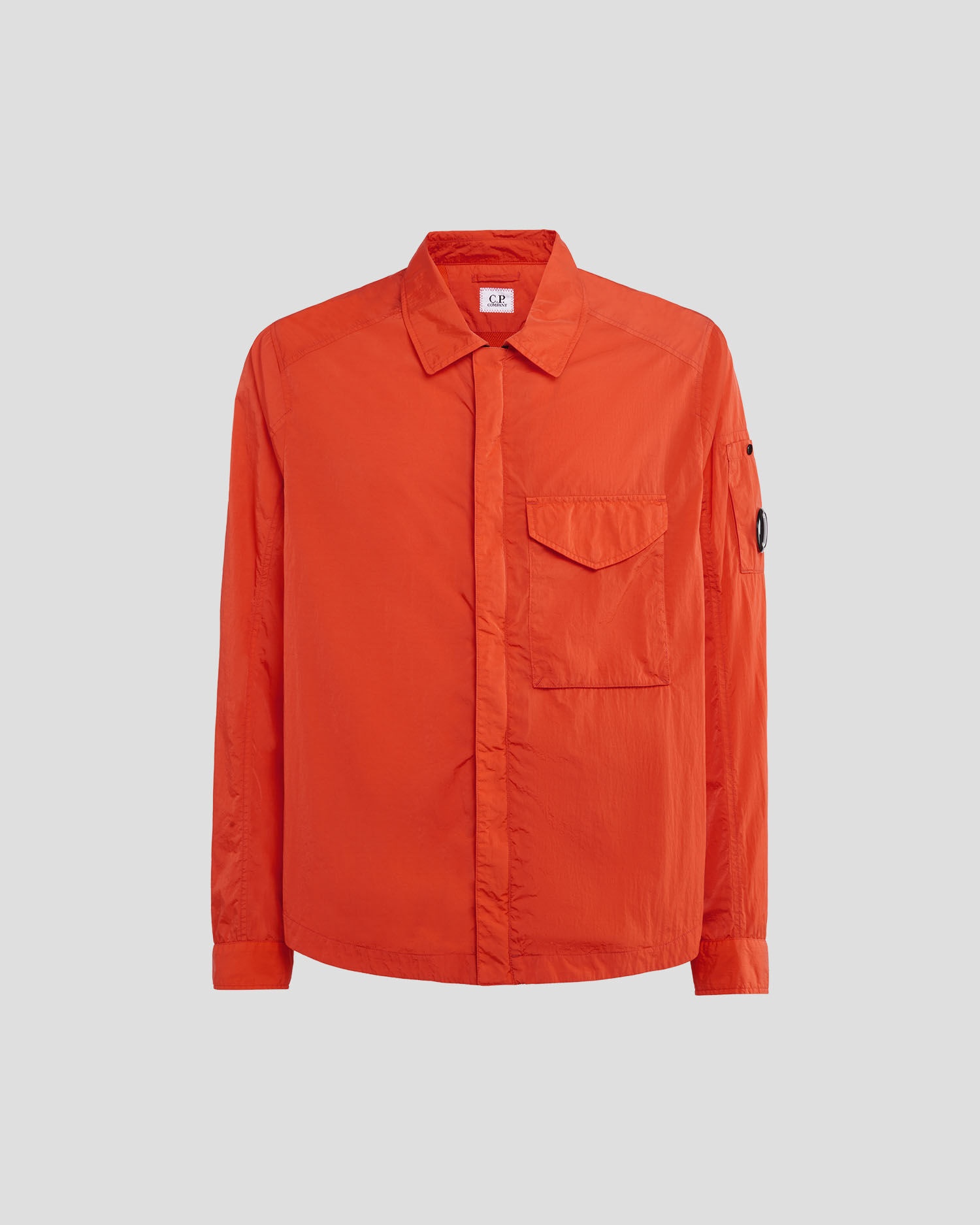 Overshirt with a classic collar and a full zip fastening, with a single chest flap pocket. The mesh lined overshirt also features adjustable cuffs and the C.P. Company Lens detail. Chrome-R is a 100% pre-consumer recycled version of our woven multifilament nylon, offering a great barrier against water and wind. Developed exclusively for garment dyeing, Chrome-R resists the pigmenting process, which generates lighter and more vibrant tones in the finished garment. - Classic collar - Full zip fastening - Chest flap pocket - Lens detail - Adjustable cuffs - Mesh lined - Garment dyed - Recycled nylon CARE & COMPOSITION CARE - Wash max 30°C - Mild process - Do not bleach - Do not tumble dry - Ironing maximum temperature 110°C - without steam - Do not dry clean - Line dry - Remove detachable accessories before washing COMPOSITION - External fabric: 100% Polyamide / Nylon - Lining: 100% Polyamide / Nylon SIZE & FITTING - Fits true to size, take your normal size - Model is 186 cm-6' 1" / 98-103 cm chest and is wearing a size L