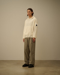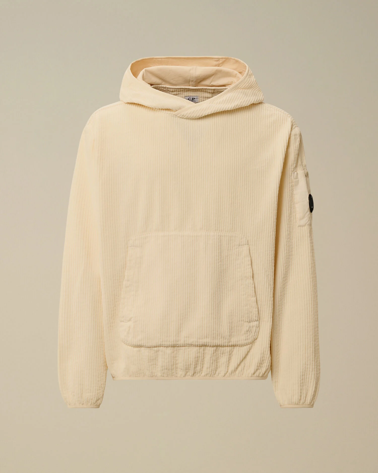 Hooded sweatshirt crafted in 350 Stripes Corduroy. The sweatshirt features an adjustable hood, snap kangaroo pocket and C.P. Company’s iconic Lens. Finished with elasticated cuffs and hem. Garment dyed. Regular fit. - Adjustable hood - Lens detail - Snap kangaroo pocket - Elasticated cuffs and hem - Garment dyed - Regular fit CARE & COMPOSITION Care - Wash max 30°C - Mild process - Do not bleach - Do not tumble dry - Ironing maximum temperature 110°C - without steam - Do not dry clean - Line dry - Wash separately - Remove detachable accessories before washing Composition - External fabric: 100% Cotton - Lining: 100% Cotton - Secondary fabric: 100% Cotton SIZE & FITTING - Fits true to size, take your normal size - Model is 186 cm-6' 1" / 98-103 cm chest and is wearing a size L PRODUCT PASSPORT PRODUCT - Weaving: China - Dyeing: China - Confection: China PACKAGING - Minimum percentage of recycled materials 70%