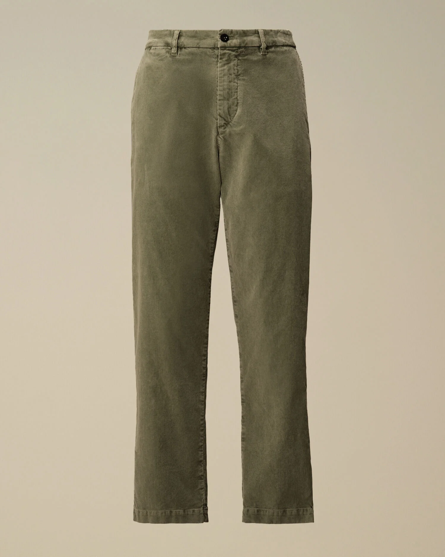 Chino pants crafted in stretch velvet 1000 stripes. The pants feature button and zip fastening, belt loops, side pockets, and back buttoned patch pockets with an applied label. Old dyed. Loose fit. - Button and zip fastening - Belt loops - Side pockets - Back buttoned patch pockets with applied label - Old dyed - Loose fit CARE & COMPOSITION Care - Wash max 30°C - Mild process - Do not bleach - Do not tumble dry - Ironing maximum temperature 110°C - without steam - Do not dry clean - Line dry in the shade - Wash separately - Wash inside out - Do not twist or wring - Iron inside out Composition - External fabric: 97% Cotton, 3% Elastane / Spandex SIZE & FITTING - Fits true to size, take your normal size - Model is 186 cm-6' 1"/ 88-91 cm waist and is wearing a size 48 PRODUCT PASSPORT PRODUCT - Weaving: Italy - Dyeing: Tunisia - Confection: Tunisia PACKAGING - Minimum percentage of recycled materials 70%