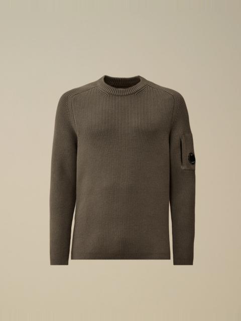 Crewneck sweater crafted in a stretch cotton/nylon blend with an English rib knit construction. The textured fabric offers flexibility and comfort. The knit features C.P. Company’s iconic Lens. Gauge 7. Regular fit. - Ribbed crewneck - Lens detail - 7 Gauge knit - Regular fit CARE & COMPOSITION Care - Wash max 30°C - Very mild process - Do not bleach - Do not tumble dry - Ironing maximum temperature 110°C - without steam - Do not dry clean - Flat dry in the shade - Wash separately - Wash inside out - Remove detachable accessories before washing Composition - External fabric: 71% Cotton, 29% Polyamide / Nylon SIZE & FITTING - Fits true to size, take your normal size - Model is 186 cm-6' 1" / 98-103 cm chest and is wearing a size L PRODUCT PASSPORT PRODUCT - Weaving: India - Dyeing: India - Confection: India PACKAGING - Minimum percentage of recycled materials 70%