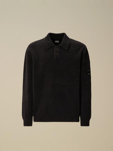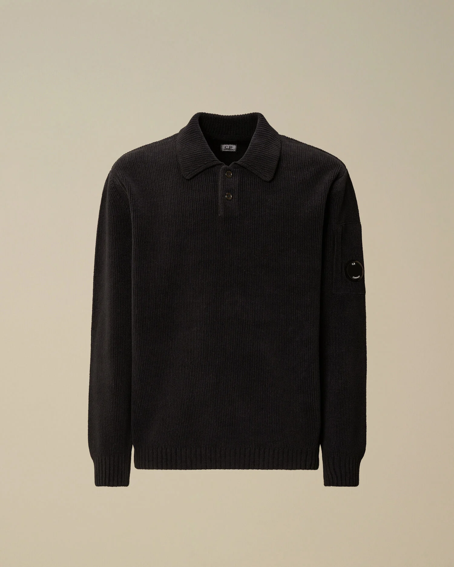 Polo sweater crafted in cotton chenille. The knit features a classic collar with a two-button placket, C.P. Company’s iconic Lens, and ribbed cuffs and hem. Garment dyed. Gauge 7. Regular fit. - Classic collar with two-button placket - Lens detail - Ribbed cuffs and hem - 7 Gauge knit - Garment dyed - Regular fit CARE & COMPOSITION Care - Wash max 30°C - Mild process - Do not bleach - Do not tumble dry - Ironing maximum temperature 110°C - without steam - Do not dry clean - Flat dry in the shade - Wash separately - Wash inside out - Do not soak - Remove detachable accessories before washing Composition - External fabric: 100% Cotton SIZE & FITTING - Fits true to size, take your normal size - Model is 186 cm-6' 1" / 98-103 cm chest and is wearing a size L PRODUCT PASSPORT PRODUCT - Weaving: India - Dyeing: India - Confection: India PACKAGING - Minimum percentage of recycled materials 70%