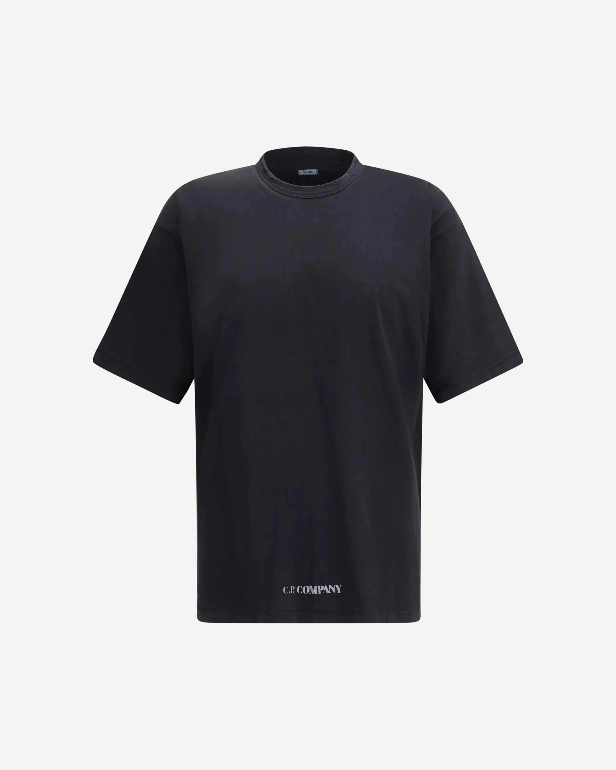 The crewneck T-shirt by C.P. Company is crafted from cotton and features a clean design enhanced by distinctive graphic details. It is designed with short sleeves and a comfortable fit, making it ideal for everyday wear. A print placed at the lower central front adds a contemporary accent, while the large print on the upper back creates a bold visual statement. A striking piece, perfect for a modern urban style. DETAILS - Sku: 20CMTS213A006057O_999 - Season: SS26 - Fit: Regular - Composition: GENERAL 100% Cotton - MADE IN TURKEY