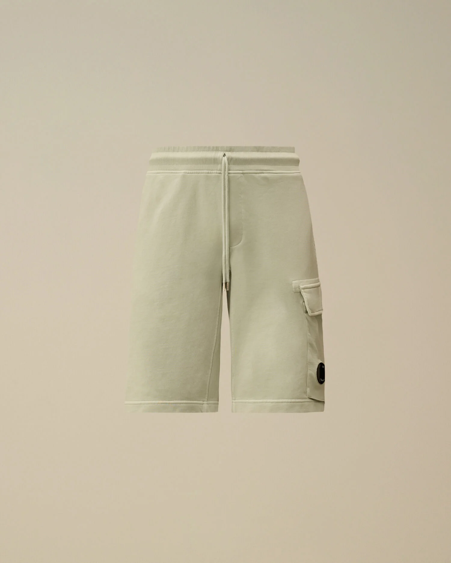 Cargo shorts crafted from medium-weight diagonal cotton fleece, a fabric that provides warmth, softness, and comfort. The model features an adjustable drawstring waistband and side pockets. Completing the design is a cargo flap pocket with snap closure and the iconic C.P. Company Lens. Garment dyed with the Resist Dyed process to create an irregular, lived-in look that highlights the garment’s construction. Regular fit. - Adjustable drawstring waistband - Side pockets - Cargo flap snap pocket with Lens detail - Resist dyed - Regular fit CARE & COMPOSITION Care - Wash max 30°C - Do not bleach - Do not tumble dry - Ironing maximum temperature 150°C - Do not dry clean - Flat dry in the shade - Wash separately - Wash with similar colours - Wash inside out - Iron inside out - Do not iron decorations - Remove detachable accessories before washing - Do not expose the garment to direct sunlight or artificial light Composition - External fabric: 100% Cotton SIZE & FITTING - Model is 186 cm-6' 1" and is wearing a size M - Fit: Regular PRODUCT PASSPORT PRODUCT - Weaving: Turkiye - Dyeing: Turkiye - Confection: Turkiye PACKAGING - Minimum percentage of recycled materials 70%
