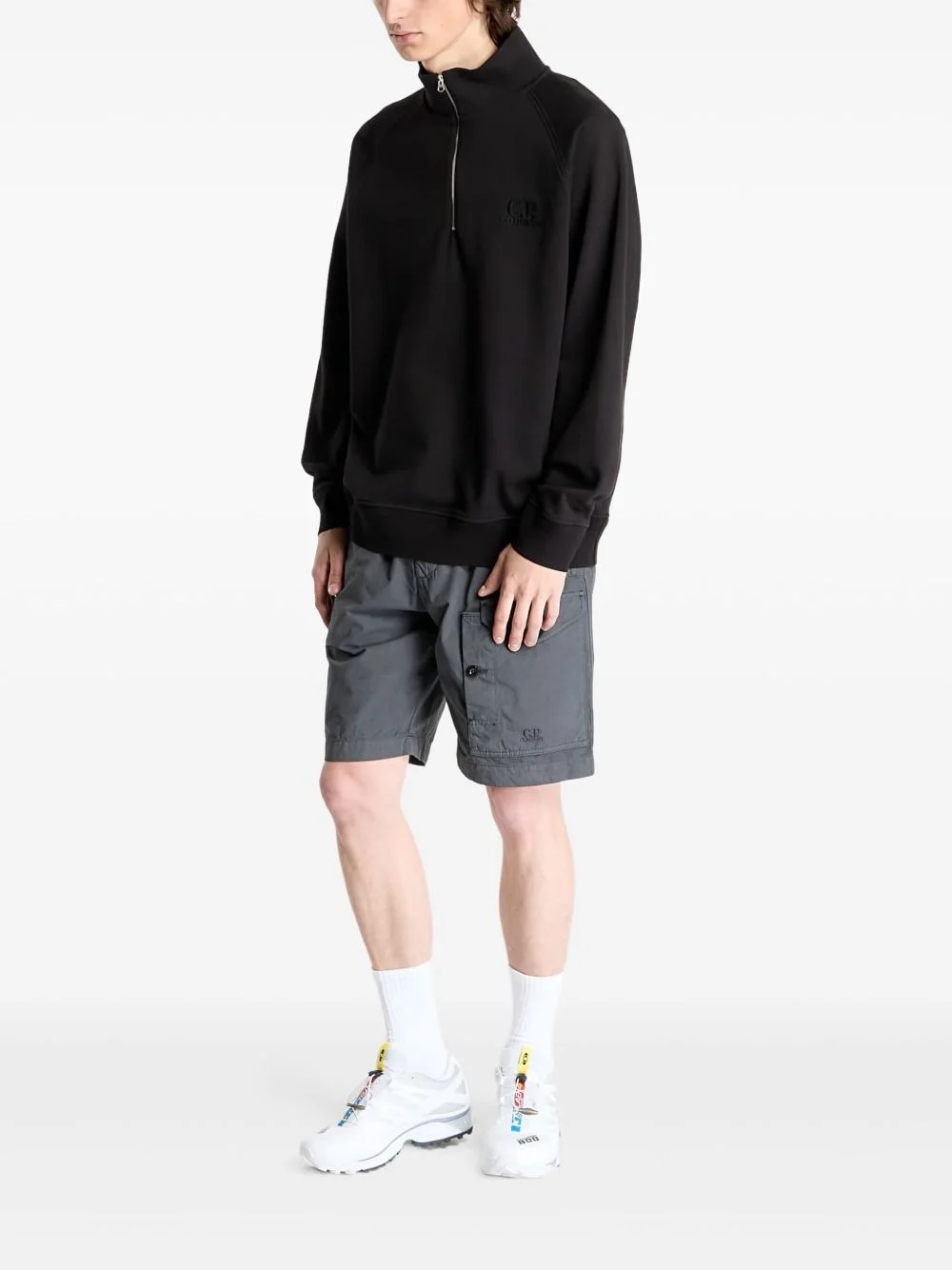 cotton half-zip sweatshirt Highlights - Black - Half-zip fastening - Long sleeves - Ribbed cuffs and hem Imported Composition Cotton 100%
