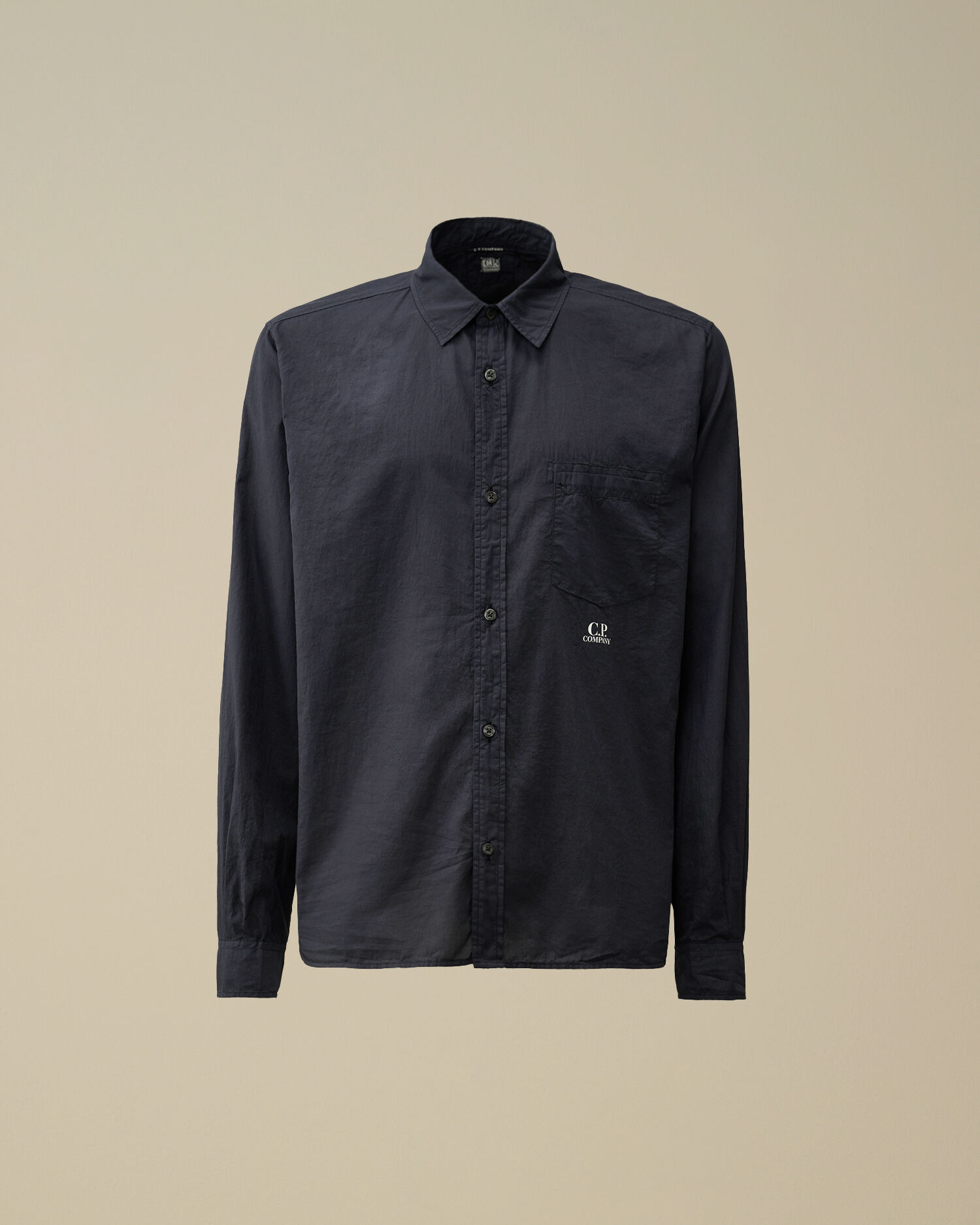 Shirt crafted in garment dyed lightweight cotton muslin. Regular fit. - Collar with button placket - Full button fastening - Chest open pocket - Printed logo detail - Adjustable button cuffs - Garment dyed - Regular fit CARE & COMPOSITION Care - Wash max 30°C - Mild process - Do not bleach - Do not tumble dry - Ironing maximum temperature 110°C - without steam - Do not dry clean - Line dry in the shade - Wash separately - Do not iron decorations - Do not expose the garment to direct sunlight or artificial light Composition - External fabric: 100% Cotton SIZE & FITTING - Fits true to size, take your normal size - Model is 186 cm-6' 1" / 98-103 cm chest and is wearing a size L PRODUCT PASSPORT PRODUCT - Weaving: India - Dyeing: Tunisia - Confection: Tunisia PACKAGING - Minimum percentage of recycled materials 70%
