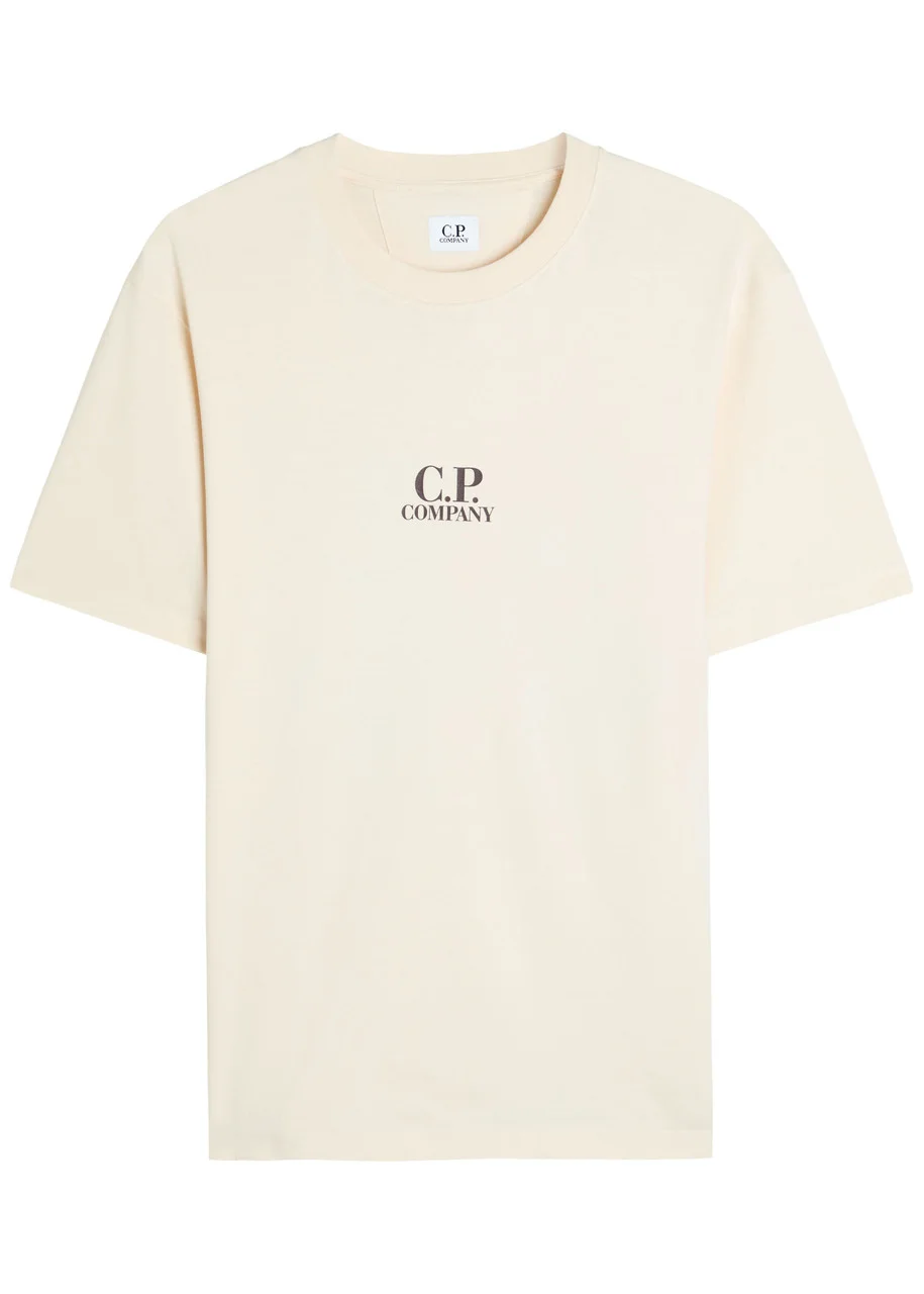 Info & Care C.P. Company cotton T-shirt Ribbed crew-neck, designer print at front and back Slips on 100% cotton Machine wash Size & Fit Length shoulder to hem: 26 inches/ 66cm Midweight Regular fit Model is 6'1"/ 185cm, chest size 38.5 inches and wears a size medium