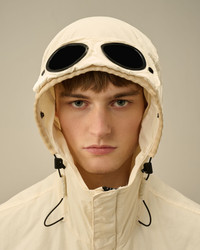 Goggle jacket crafted in Flatt Nylon, an emerized opaque nylon with light resin on the reverse side. Garment dyed anti-drop treated. Regular fit. - Adjustable Goggle hood - Hidden two-way zip fastening with flap snap closure - Chest embroidered logo detail - Front flap snap pockets - Adjustable snap cuffs - Garment dyed - Regular fit CARE & COMPOSITION CARE - Wash max 30°C - Mild process - Do not bleach - Do not tumble dry - Ironing maximum temperature 110°C - without steam - Do not dry clean - Line dry - Wash separately - Wash inside out - Do not iron decorations - Remove detachable accessories before washing COMPOSITION - External fabric: 100% Polyamide / Nylon - Lining: 100% Polyamide / Nylon SIZE & FITTING - Fits true to size, take your normal size - Model is 186 cm-6' 1" / 98-103 cm chest and is wearing a size L