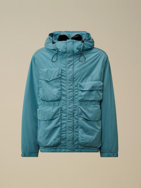 Goggle jacket crafted in Chrome-R, a 100% recycled, shiny multifilament nylon. Made from production scraps, reprocessed into a new fibre certified by the Global Recycled Standard (GRS). The jacket features C.P. Company’s iconic Goggle hood, a hidden two-way full zip fastening with a flap snap closure, and front flap snap pockets. Adjustable snap cuffs and a drawstring hem offer a custom fit. Wadding padded for extra insulation. Garment dyed with anti-drop treatment. Regular fit. - Adjustable Goggle hood - Hidden two-way full zip fastening with flap snap closure - Front flap snap pockets - Adjustable snap cuffs - Adjustable drawstring hem - Garment dyed - Wadding padded - Regular fit CARE & COMPOSITION Care - Wash max 30°C - Mild process - Do not bleach - Do not tumble dry - Ironing maximum temperature 110°C - without steam - Do not dry clean - Line dry - Wash separately - Wash inside out - Remove detachable accessories before washing Composition - External fabric: 100% Polyamide / Nylon - Lining: 100% Polyamide / Nylon - Padding (Fiber): 100% Polyester SIZE & FITTING - Fits true to size, take your normal size - Model is 186 cm-6' 1" / 98-103 cm chest and is wearing a size L PRODUCT PASSPORT PRODUCT - Weaving: China - Dyeing: China - Confection: China - Product contains at least 45% of recycled material - Releases plastic microfibers into the environment during washing PACKAGING - Minimum percentage of recycled materials 70%