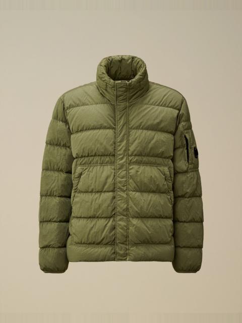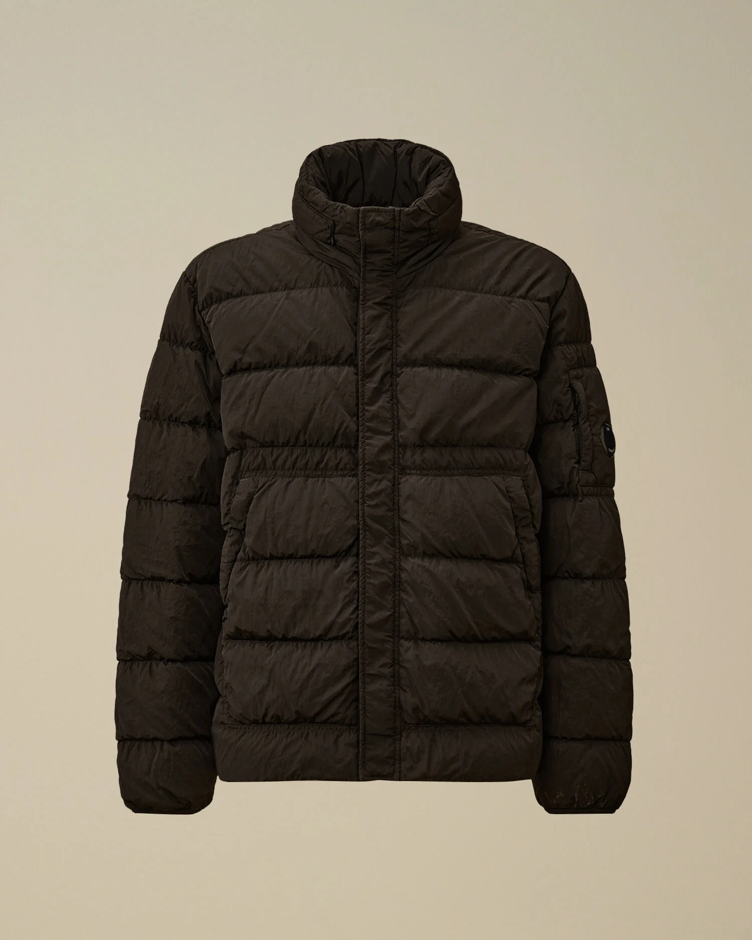 Down jacket crafted in Chrome-R, a 100% recycled, shiny multifilament nylon. Made from production scraps, reprocessed into a new fibre certified by the Global Recycled Standard (GRS). The jacket features a concealable zip hood, a two-way full zip fastening with a flap snap closure, and side zip pockets. Finished with C.P. Company’s iconic Lens, ribbed cuffs, and an adjustable drawstring hem. Garment dyed with anti-drop treatment. Regular fit. - Concealable zip hood - Two-way full zip fastening with flap snap closure - Side zip pockets - Lens detail - Ribbed cuffs - Adjustable drawstring hem - Garment dyed - Regular fit CARE & COMPOSITION Care - Wash max 30°C - Mild process - Do not bleach - Do not tumble dry - Ironing maximum temperature 110°C - without steam - Do not dry clean - Line dry - Wash separately - Wash inside out - Remove detachable accessories before washing Composition - External fabric: 100% Polyamide / Nylon - Lining: 100% Polyamide / Nylon - Padding (Fiber): 100% Polyester - Padding (Feather): [194gr. - 90% ] 90% White duck down, 10% Feather SIZE & FITTING - Fits true to size, take your normal size - Model is 186 cm-6' 1" / 98-103 cm chest and is wearing a size L PRODUCT PASSPORT PRODUCT - Weaving: China - Dyeing: China - Confection: China - Product contains at least 55% of recycled material - Releases plastic microfibers into the environment during washing PACKAGING - Minimum percentage of recycled materials 70%