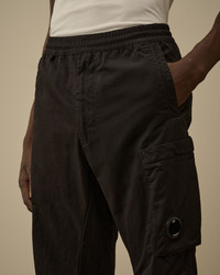 Cargo pants crafted in Diagonal Flatt Nylon, a diagonally woven nylon with a light resin finish on the reverse, providing softness and an opaque appearance. The pants feature C.P. Company’s iconic Lens, adjustable drawstring waistband, side pockets, and a cargo zip pocket. Finished with a back snap pocket with an applied label. Garment dyed. Regular fit. - Adjustable drawstring waistband - Side pockets - Cargo zip pocket with Lens detail - Back snap pocket with applied label - Garment dyed - Regular fit CARE & COMPOSITION Care - Wash max 30°C - Mild process - Do not bleach - Do not tumble dry - Ironing maximum temperature 110°C - without steam - Do not dry clean - Line dry - Wash separately - Wash inside out - Remove detachable accessories before washing Composition - External fabric: 100% Polyamide / Nylon SIZE & FITTING - Fits true to size, take your normal size - Model is 186 cm-6' 1"/ 88-91 cm waist and is wearing a size 48 PRODUCT PASSPORT PRODUCT - Weaving: Korea - Dyeing: Romania - Confection: Romania - Product contains at least 60% of recycled material - Releases plastic microfibers into the environment during washing PACKAGING - Minimum percentage of recycled materials 70%