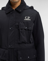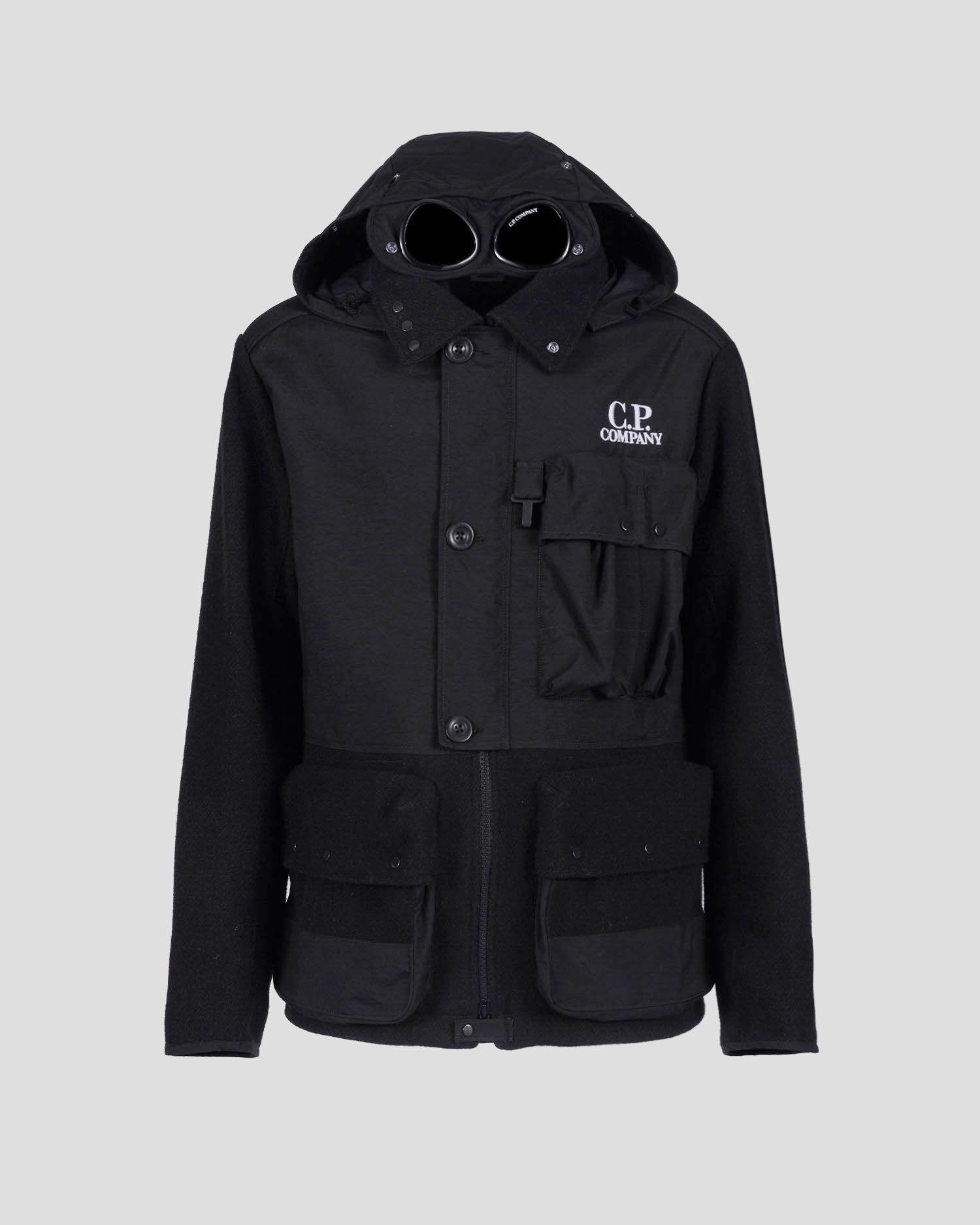 Jacket constructed with a detachable Goggle hood over a classic collar, and with a full zip fastening under a half button storm flap. The jacket also features the embroidered C.P. Company logo detail, secure chest compartments, and front flap pockets. CP Duffel, the cloth used for the woollen garments in the FW023 collection, is a precise replica of the iconic CP Duffel Coat fabric. The yarn is both very compact and weather resistant, and is mixed with Taslan medium. - Detachable Goggle hood - Classic collar - Full zip fastening - Half button storm flap - Logo detail - Secure chest compartment - Front flap pockets - Mixed with piece dyed Taslan Medium - Piece dyed CARE & COMPOSITION CARE - Do not wash - Do not bleach - Do not tumble dry - Ironing maximum temperature 150°C - Dry cleaning in tetrachloroethene - mild process - Wash inside out - Remove detachable accessories before washing COMPOSITION - External fabric: 100% Virgin wool - Lining: 100% Polyamide / Nylon - Secondary fabric: 100% Polyamide / Nylon SIZE & FITTING - Fits true to size, take your normal size - Model is 186 cm-6' 1" / 98-102 cm chest and is wearing a size 50