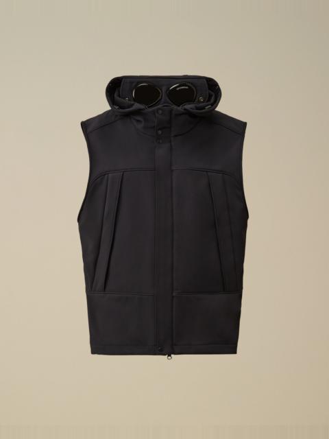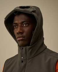 Goggle gilet crafted in C.P. Shell-R, a recycled multifilament 3-layer softshell stretch. Made from recycled Polyester yarn, certified by the Global Recycled Standard (GRS). The vest features C.P. Company’s iconic Goggle hood, a hidden two-way full zip fastening, and side zip pockets. Windproof with anti-drop treatment. Bonded for a water column of 5000mm, offering windproof protection with anti-drop treatment. Regular fit. - Adjustable Goggle hood - Hidden two-way full zip fastening with flap snap closure - Side hidden zip pockets - Adjustable drawstring hem - Regular fit CARE & COMPOSITION Care - Wash max 30°C - Mild process - Do not bleach - Do not tumble dry - Ironing maximum temperature 110°C - without steam - Do not dry clean - Line dry - Wash inside out - Remove detachable accessories before washing Composition - Lining: 100% Polyamide / Nylon - Secondary lining: 100% Cotton - Inner main fabric: 100% Polyester - External main fabric: 94% Polyester, 6% Elastane / Spandex SIZE & FITTING - Fits true to size, take your normal size - Model is 186 cm-6' 1" / 98-103 cm chest and is wearing a size L PRODUCT PASSPORT PRODUCT - Weaving: China - Dyeing: China - Confection: Myanmar - Product contains at least 85% of recycled material - Releases plastic microfibers into the environment during washing PACKAGING - Minimum percentage of recycled materials 70%