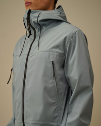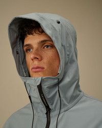 Goggle jacket crafted from C.P. Shell-R, a three-layer recycled polyester softshell with mechanical stretch, certified by the Global Recycled Standard (GRS). This multifilament fabric combines comfort and protection, offering a water resistance of up to 5000 mm and windproof performance. Anti-drop treated. Regular fit. - Adjustable Goggle hood - Two-way full zip fastening - Side zip pockets - Elasticated cuffs - Adjustable drawstring hem - Regular fit CARE & COMPOSITION Care - Wash max 30°C - Mild process - Do not bleach - Do not tumble dry - Ironing maximum temperature 110°C - without steam - Do not dry clean - Line dry - Wash inside out - Remove detachable accessories before washing Composition - Lining: 100% Polyamide / Nylon - Inner main fabric: 100% Polyester - External main fabric: 92% Polyester, 8% Elastane / Spandex SIZE & FITTING - Model is 188 cm-6' 2" and is wearing a size L - Fit: Regular PRODUCT PASSPORT PRODUCT - Weaving: China - Dyeing: China - Confection: Myanmar - Product contains at least 80% of recycled material - Releases plastic microfibers into the environment during washing PACKAGING - Minimum percentage of recycled materials 70%