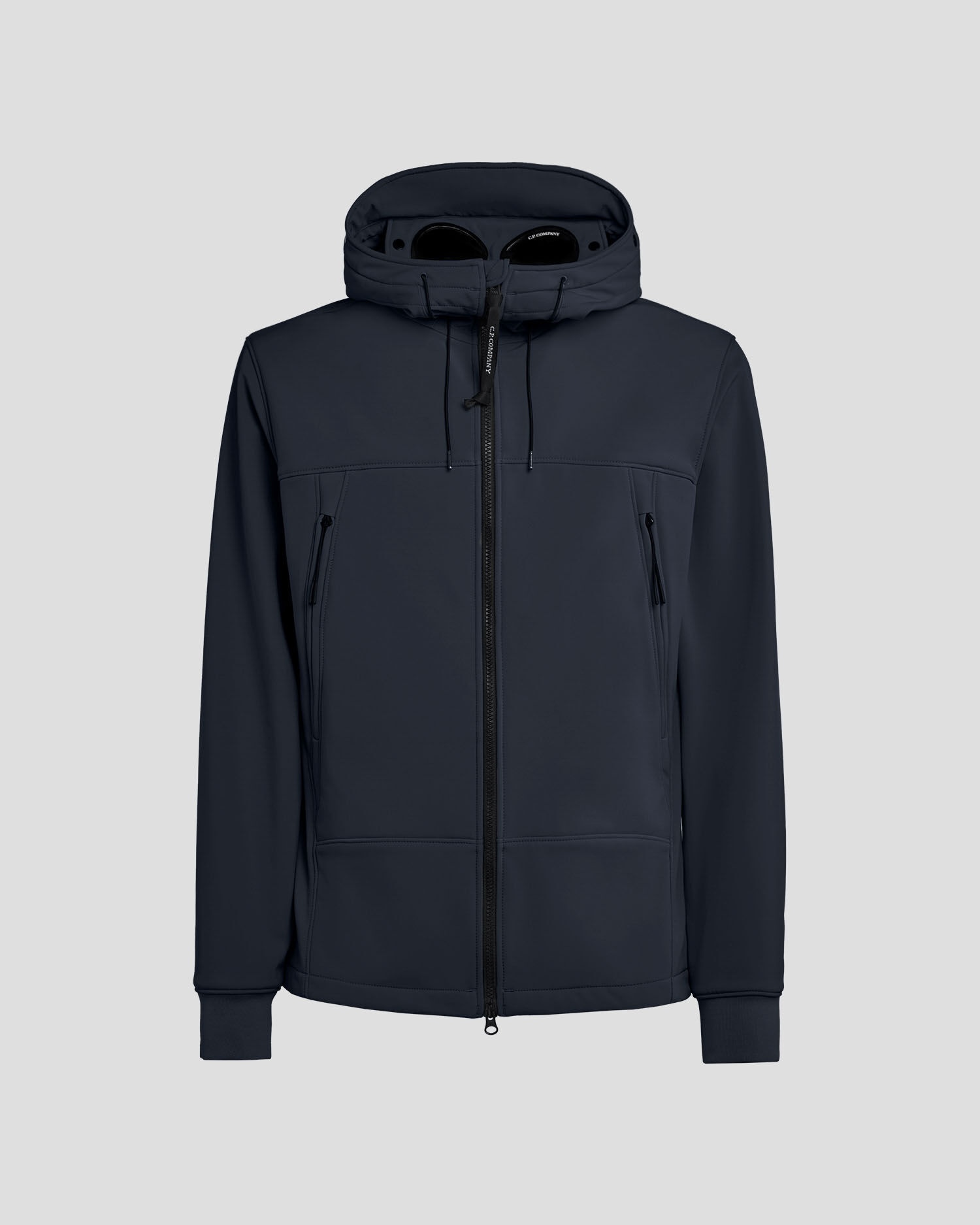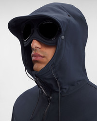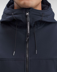 Softshell jacket in a flexible yet protective fit, designed with full zip fastening, secure pockets, and the C.P. Company Goggle hood. The jacket is manufactured in C.P. Shell-R, a soft-shell fabric made from recycled polyester yarn where a weather-resistant membrane is bonded to a lightweight mesh, producing an easy-to-wear trans-seasonal layer without compromising the garment's protective properties. - Recycled nylon - Goggle hood - Full zip fastening - Secure front pockets CARE & COMPOSITION CARE - Wash max 30°C - Mild process - Do not bleach - Do not tumble dry - Ironing maximum temperature 110°C - without steam - Do not dry clean - Line dry - Wash inside out - Remove detachable accessories before washing COMPOSITION - External fabric: 94% Polyester, 6% Elastane / Spandex - Lining: 100% Polyester - Secondary lining: 100% Cotton - Third Lining: 100% Polyamide / Nylon SIZE & FITTING - Fits true to size, take your normal size - Model is 186 cm-6' 1" / 98-102 cm chest and is wearing a size 50