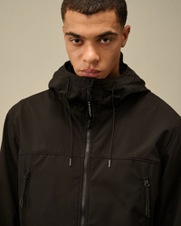 Goggle jacket crafted in C.P. Shell-R, a multifilament 3-layer softshell stretch, made from recycled polyester yarn. Global Recycled Standard certified (GRS). Bonded for water column of 5000mm. Windproof anti-drop treated. Regular fit. - Adjustable Goggle hood - Two-way full zip fastening - Side zip pockets - Elasticated cuffs - Regular fit CARE & COMPOSITION CARE - Wash max 30°C - Mild process - Do not bleach - Do not tumble dry - Ironing maximum temperature 110°C - without steam - Do not dry clean - Line dry - Wash separately - Wash inside out - Remove detachable accessories before washing COMPOSITION - Lining: 100% Polyamide / Nylon - Inner main fabric: 100% Polyester - External main fabric: 92% Polyester, 8% Elastane / Spandex SIZE & FITTING - Fits true to size, take your normal size - Model is 186 cm-6' 1" / 98-103 cm chest and is wearing a size L