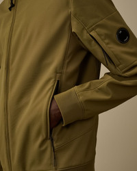 Hooded jacket crafted in C.P. Shell-R, a recycled multifilament 3-layer softshell stretch. Made from recycled Polyester yarn, certified by the Global Recycled Standard (GRS). The jacket features an adjustable hood, a two-way full zip fastening, side zip pockets, and C.P. Company’s iconic Lens. Ribbed cuffs and back hem complete the design. Bonded for a water column of 5000mm, offering windproof protection with anti-drop treatment. Regular fit. - Adjustable hood - Two-way full zip fastening - Lens detail - Side zip pockets - Ribbed cuffs and back hem - Regular fit CARE & COMPOSITION Care - Wash max 30°C - Mild process - Do not bleach - Do not tumble dry - Ironing maximum temperature 110°C - without steam - Do not dry clean - Line dry - Wash inside out - Do not soak - Remove detachable accessories before washing Composition - Lining: 100% Polyester - Secondary lining: 100% Cotton - Inner main fabric: 100% Polyester - External main fabric: 94% Polyester, 6% Elastane / Spandex SIZE & FITTING - Fits true to size, take your normal size - Model is 186 cm-6' 1" / 98-103 cm chest and is wearing a size L PRODUCT PASSPORT PRODUCT - Weaving: China - Dyeing: China - Confection: Myanmar - Product contains at least 75% of recycled material - Releases plastic microfibers into the environment during washing PACKAGING - Minimum percentage of recycled materials 70%