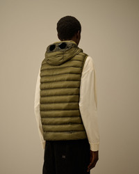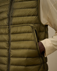 Goggle down gilet crafted in D.D. Shell, a micro-ripstop opaque 7-denier nylon. The lightness and transparency of the fabric emphasize the structure of the garment, while the Direct Down Injection process ensures optimal insulation. The gilet features C.P. Company’s iconic Goggle hood, a two-way full zip fastening, and side zip pockets. Finished with an adjustable drawstring hem. Regular fit. - Adjustable Goggle hood - Two-way full zip fastening - Side zip pockets - Adjustable drawstring hem - Regular fit CARE & COMPOSITION Care - Wash max 30°C - Mild process - Do not bleach - Do not tumble dry - Ironing maximum temperature 110°C - without steam - Do not dry clean - Line dry - Wash inside out - Remove detachable accessories before washing Composition - External fabric: 100% Polyamide / Nylon - Lining: 100% Polyamide / Nylon - Padding (Fiber): 100% Polyester - Padding (Feather): [53gr. - 95% ] 95% White duck down, 5% Feather SIZE & FITTING - Fits true to size, take your normal size - Model is 186 cm-6' 1" / 98-103 cm chest and is wearing a size L PRODUCT PASSPORT PRODUCT - Weaving: Korea - Dyeing: Korea - Confection: China - Releases plastic microfibers into the environment during washing PACKAGING - Minimum percentage of recycled materials 70%