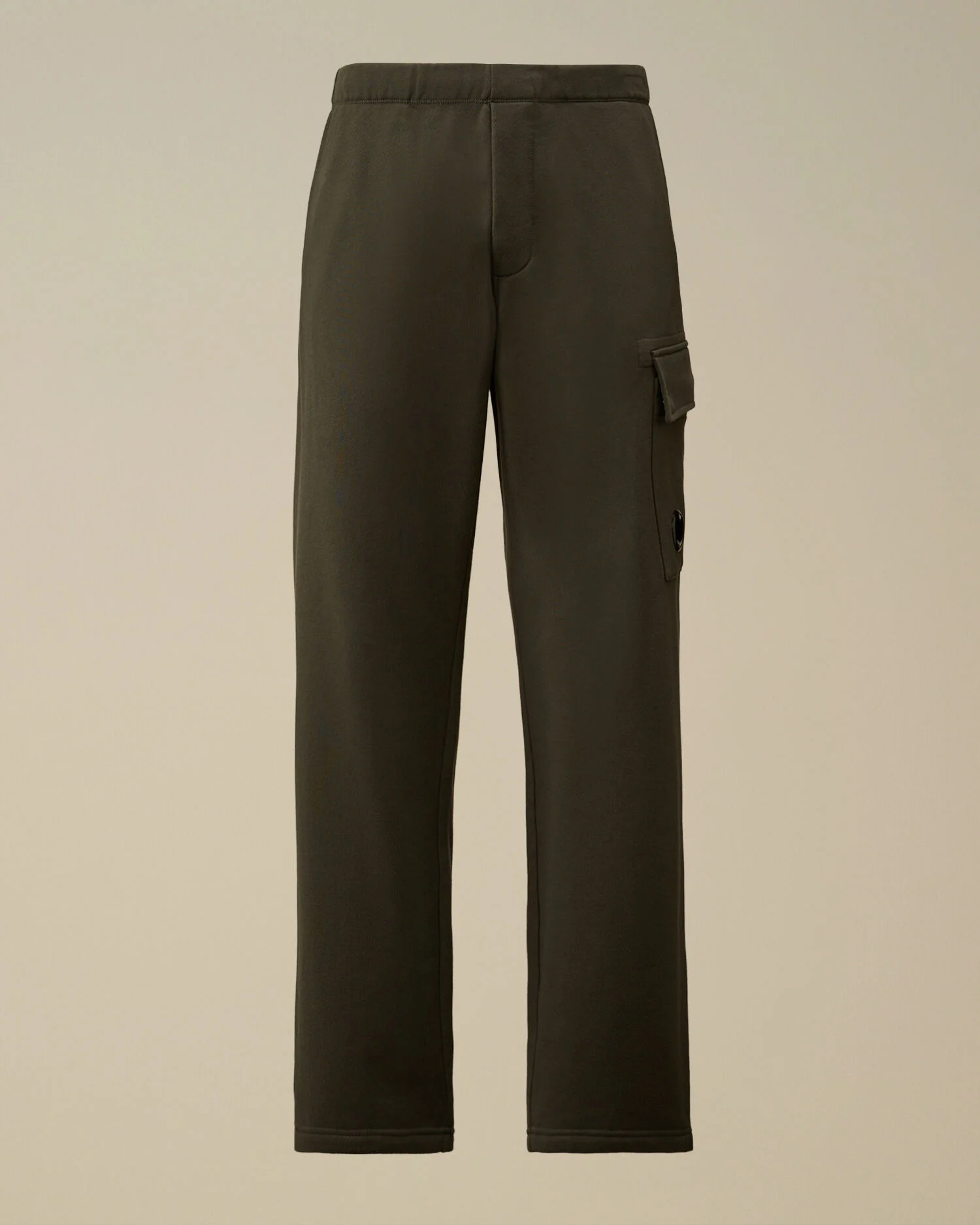 Cargo sweatpants crafted in Diagonal Raised Fleece, a medium-weight brushed diagonal-weave cotton. The soft fabric ensures comfort and ease of movement. The pants feature an adjustable drawstring waistband, hidden button fastening, and side pockets. Complete with a cargo flap snap pocket with C.P. Company’s iconic Lens and a back open pocket. Finished with adjustable drawstring hems. Regular fit. - Adjustable drawstring waistband - Hidden button fastening - Side pockets - Cargo flap snap pocket with Lens detail - Back open pocket - Adjustable drawstring hems - Regular fit CARE & COMPOSITION Care - Wash max 30°C - Do not bleach - Do not tumble dry - Ironing maximum temperature 110°C - without steam - Do not dry clean - Dry flat - Wash with similar colours - Wash inside out - Do not iron decorations - Do not expose to heat - Remove detachable accessories before washing - Dry inside out Composition - External fabric: 100% Cotton SIZE & FITTING - Fits true to size, take your normal size - Model is 186 cm-6' 1" / 85-88 cm waist and is wearing a size L PRODUCT PASSPORT PRODUCT - Weaving: China - Dyeing: China - Confection: China PACKAGING - Minimum percentage of recycled materials 70%