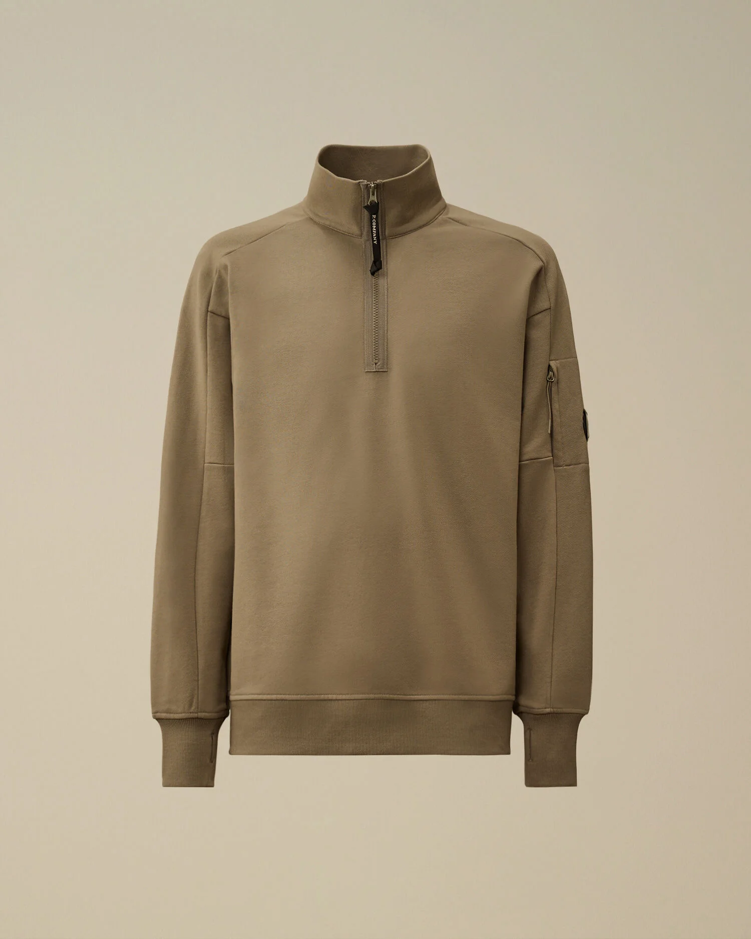 Half zip sweatshirt crafted in Diagonal Raised Fleece, a medium-weight brushed diagonal-weave cotton. The soft fabric ensures comfort and ease of movement. The sweatshirt features C.P. Company’s iconic Lens, ribbed cuffs and hem. Complete with a thumb hole on the cuffs. Regular fit. - Half zip fastening - Lens detail - Ribbed cuffs and hem - Thumb hole on cuffs - Regular fit CARE & COMPOSITION Care - Wash max 30°C - Do not bleach - Do not tumble dry - Ironing maximum temperature 110°C - without steam - Do not dry clean - Dry flat - Wash with similar colours - Wash inside out - Do not iron decorations - Do not expose to heat - Remove detachable accessories before washing - Dry inside out Composition - External fabric: 100% Cotton SIZE & FITTING - Fits true to size, take your normal size - Model is 186 cm-6' 1" / 98-103 cm chest and is wearing a size L PRODUCT PASSPORT PRODUCT - Weaving: China - Dyeing: China - Confection: China PACKAGING - Minimum percentage of recycled materials 70%
