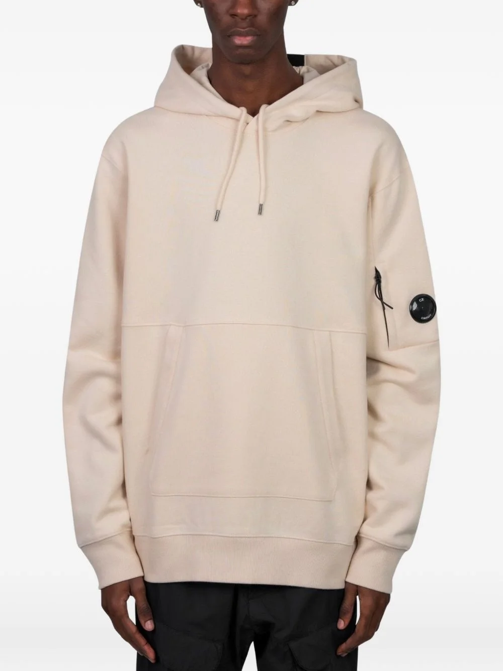 kangaroo-pocket hoodie Highlights - Beige - Drawstring hood - Logo patch - Pouch pocket - Zip pocket - Regular fit - C.p. company suggests removing any detachable accessories before washing. Made in Italy Composition Cotton 100% Washing instructions Read Manufacturer Guidelines