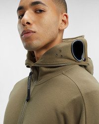 Zipped Goggle hoodie feauting ribbed cuffs and hem, two front pockets, a full zip fastening and a full zip-up Goggle hood. Manufactured in our diagonal raised fleece, a midweight loopback cotton option that combines absolute comfort with a substantial and hard-wearing feel. - Full zip up Goggle hood - Zip fastening - Ribbed cuffs and hem - Two zipped front pockets CARE & COMPOSITION CARE - Wash max 30°C - Do not bleach - Do not tumble dry - Ironing maximum temperature 110°C - without steam - Do not dry clean - Wash separately - Remove accessories before washing - Wash with similar colours - Wash inside out - Do not iron decorations - do not expose to heat - Dry inside out COMPOSITION - External fabric: 100% Cotton SIZE & FITTING - Fits true to size, take your normal size - Model is 186 cm-6' 1" / 98-103 cm chest and is wearing a size L