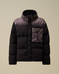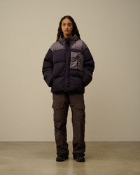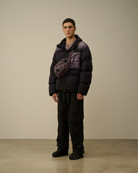Goggle down jacket crafted in Eco Chrome-R, the new version of the Chrome-R using ECONYL®, a 100% regenerated nylon. Garment dyed anti-drop treated. Mixed with Taylon-P. - Concealable Goggle hood with inner zip opening - Hidden two-way full zip fastening with flap closure - Chest flap pockets - Side zip pockets - Garment dyed - Regular fit CARE & COMPOSITION CARE - Wash max 30°C - Mild process - Do not bleach - Do not tumble dry - Ironing maximum temperature 110°C - without steam - Do not dry clean - Line dry - Remove accessories before washing COMPOSITION - External fabric: 100% Polyamide / Nylon - Lining: 100% Polyamide / Nylon - Padding: 100% Polyester - Secondary fabric: 63% Polyamide / Nylon, 37% Polyester - Padding: [217gr. - 0% ] 90% Grey duck down, 10% Grey Duck feather SIZE & FITTING - Fits true to size, take your normal size - Model is 186 cm-6' 1" / 98-103 cm chest and is wearing a size L - Female model is 170 cm - 5' 57" and is wearing a size M