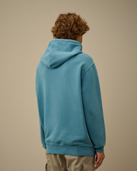 Hooded sweatshirt crafted in brushed and emerized diagonal-weave gauzed fleece. The soft fabric ensures comfort and ease of movement. The sweatshirt features an adjustable hood, chest embroidered logo detail, and a kangaroo pocket. Finished with ribbed cuffs and hem. The Resist Dyed process uses direct dyes on garments pre-treated with cationic resin, creating an irregular colour effect that enhances texture and details. Regular fit. - Adjustable hood - Chest embroidered logo detail - Kangaroo pocket - Ribbed cuffs and hem - Resist dyed - Regular fit CARE & COMPOSITION Care - Wash max 30°C - Do not bleach - Do not tumble dry - Ironing maximum temperature 150°C - Do not dry clean - Flat dry in the shade - Wash separately - Wash with similar colours - Wash inside out - Iron inside out - Do not iron decorations - Do not expose the garment to direct sunlight or artificial light Composition - External fabric: 100% Cotton SIZE & FITTING - Fits true to size, take your normal size - Model is 186 cm-6' 1" / 98-103 cm chest and is wearing a size L PRODUCT PASSPORT PRODUCT - Weaving: Turkiye - Dyeing: Turkiye - Confection: Turkiye PACKAGING - Minimum percentage of recycled materials 70%