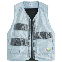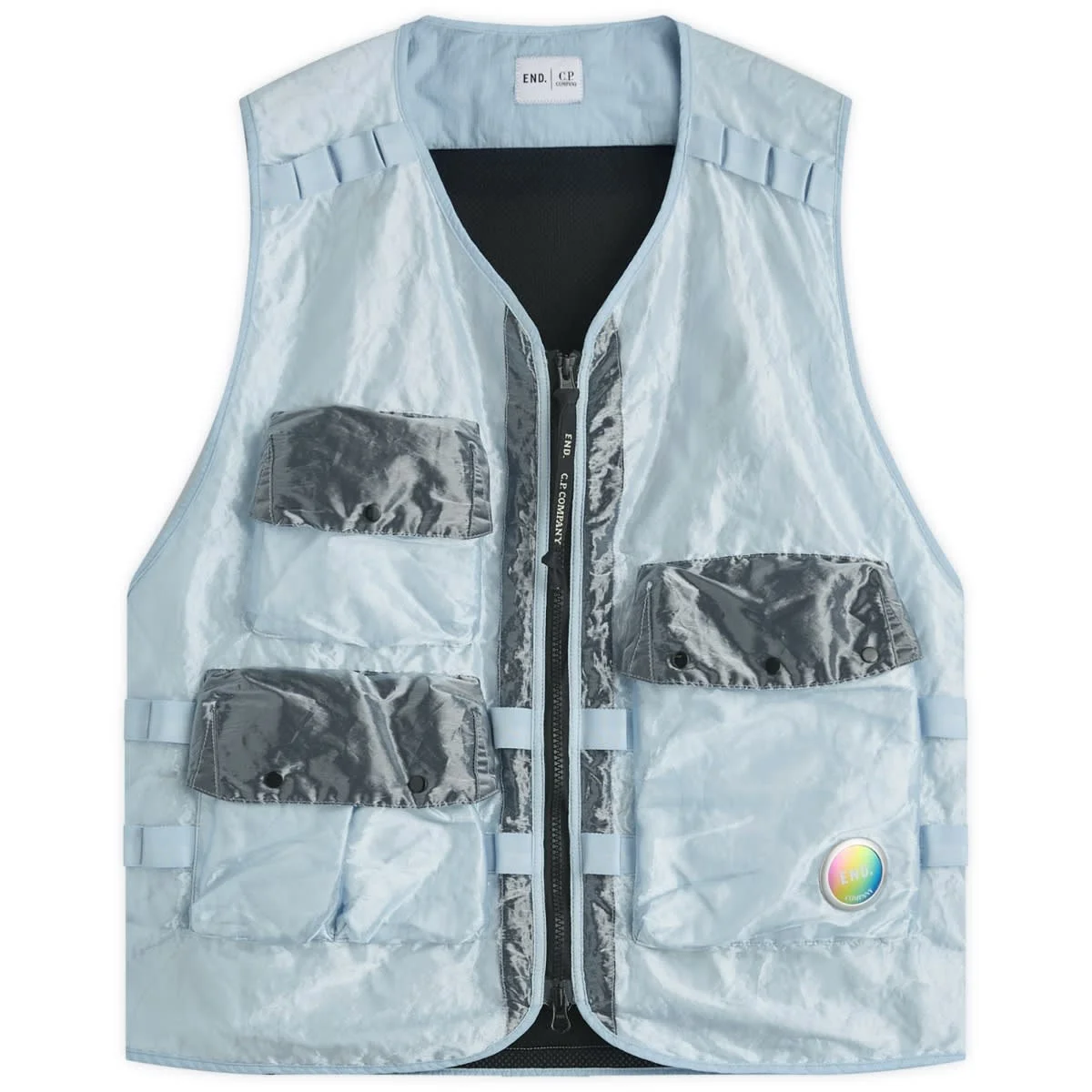 Part of the four-piece capsule with C.P. Company, celebrating END.’s 20th anniversary, this technical vest continues the Corner Shop theme, drawing inspiration from traditional newsagent confectionery. Crafted in Kan-D fabric (Klear Achronic Nylon Dyed), it offers a glossy, see-through finish achieved via flattened monofilament nylon and roller processing, creating the signature mirror-like surface C.P. Company is known for. Reminiscent of mid-century sweet wrappers, the vest is padded with lightweight down fill and finished with a breathable mesh back. - 100% Polyamide - Down Fill Insulation - Mesh Back - Adjustable Back Waist Tab - 3 Pockets - Tape Detail - Co-branded 2-Way Zip Pull - Iridescent Branded Goggle - Style Code: 19CSVE033A