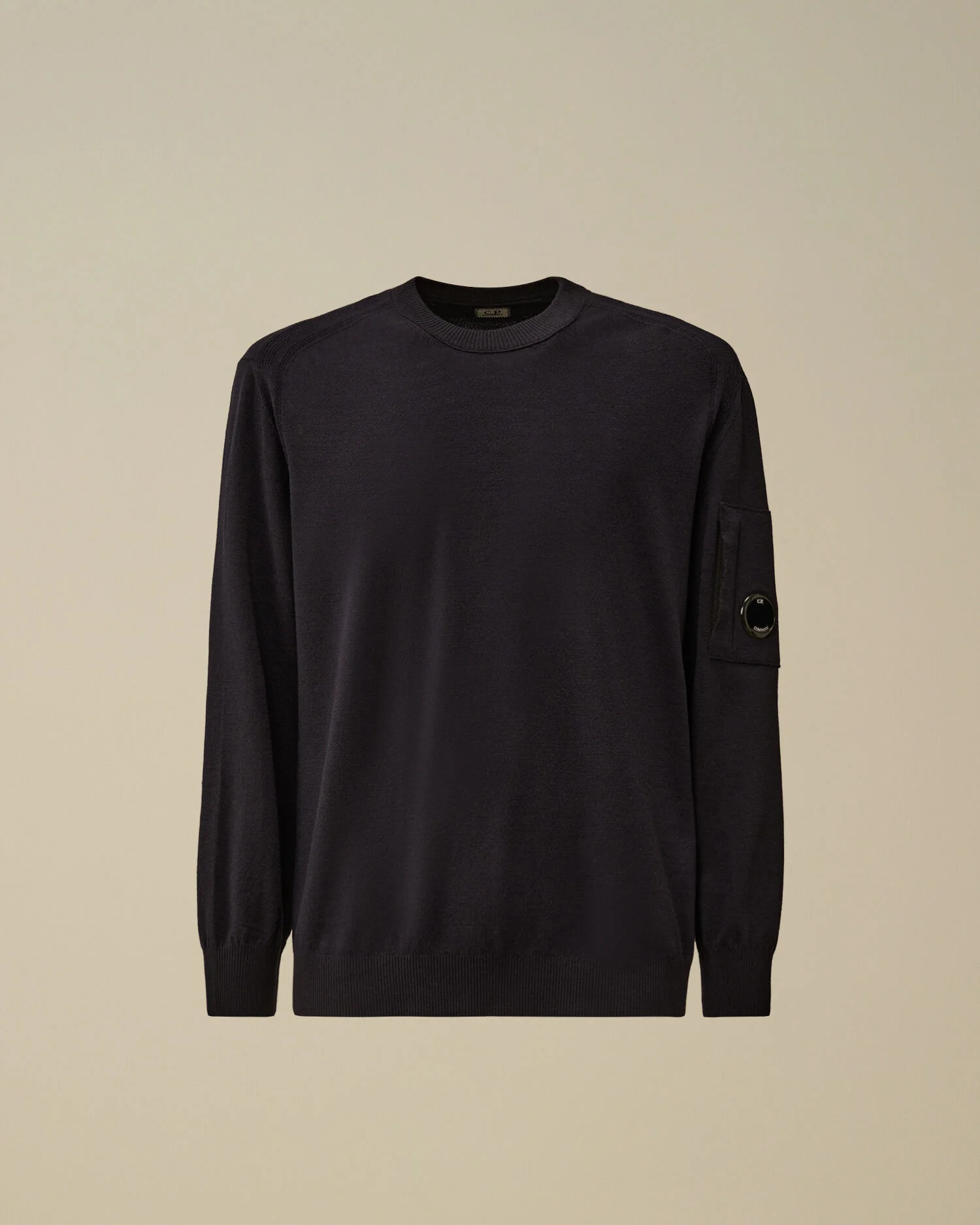 Crewneck sweater crafted in Extrafine Merino Wool. The soft, lightweight yarn offers a refined texture and superior comfort. The knit features C.P. Company’s iconic Lens, ribbed cuffs and hem. Finished with contrast stitching. Gauge 12. Regular fit. - Ribbed crewneck - Contrast stitching - Lens detail - Ribbed cuffs and hem - 12 Gauge knit - Regular fit CARE & COMPOSITION Care - Hand wash - Do not bleach - Do not tumble dry - Ironing maximum temperature 110°C - without steam - Do not dry clean - Dry flat - Remove detachable accessories before washing Composition - External fabric: 88% Virgin wool, 12% Polyester SIZE & FITTING - Fits true to size, take your normal size - Model is 186 cm-6' 1" / 98-103 cm chest and is wearing a size L PRODUCT PASSPORT PRODUCT - Weaving: Bulgaria - Dyeing: Bulgaria - Confection: Bulgaria PACKAGING - Minimum percentage of recycled materials 70%