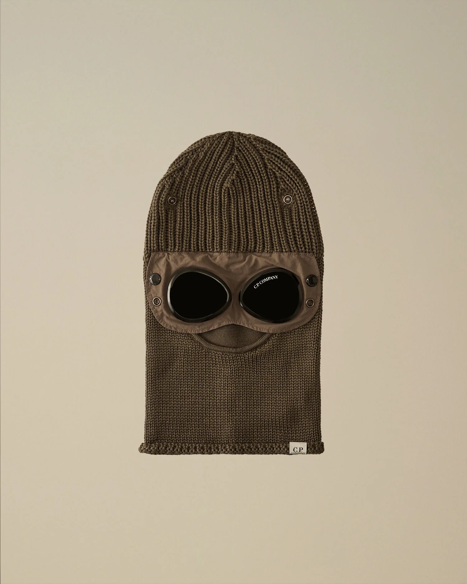 Balaclava crafted in Extrafine Merino Wool, offering softness and warmth. The balaclava features a ribbed knit, a woven logo label, and C.P. Company’s iconic Goggle lenses. - Ribbed knit - Woven logo label - Goggle Lenses CARE & COMPOSITION Care - Hand wash - Do not bleach - Do not tumble dry - Ironing maximum temperature 110°C - without steam - Dry cleaning in tetrachloroethene - mild process - Dry flat - Wash separately - Wash inside out - Do not soak - Remove detachable accessories before washing - Do not expose the garment to direct sunlight or artificial light Composition - External fabric: 100% Wool - Secondary fabric: 100% Polyamide / Nylon PRODUCT PASSPORT PRODUCT - Weaving: Italy - Dyeing: China - Confection: Italy PACKAGING - Minimum percentage of recycled materials 70%