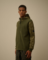 Full zip hooded sweater crafted in Extrafine Merino Wool. The soft, lightweight yarn offers a refined texture and superior comfort. The adjustable hood and sleeves are crafted in D.D. Shell, quilted with Primaloft® Silver, an insulation solution with high thermal and breathability properties. The knit features C.P. Company’s iconic Lens and ribbed cuffs. Regular fit. - Adjustable hood in D.D. Shell quilted with Primaloft® Silver - Two-way full zip fastening - Lens detail - Sleeves in D.D. Shell quilted with Primaloft® Silver - Ribbed cuffs - Regular fit CARE & COMPOSITION Care - Hand wash - Do not bleach - Do not tumble dry - Ironing maximum temperature 110°C - without steam - Dry cleaning in tetrachloroethene - mild process - Dry flat - Wash separately - Remove detachable accessories before washing Composition - External fabric: 100% Wool - Lining: 100% Polyamide / Nylon - Padding (Fiber): 100% Polyester - Secondary fabric: 100% Polyamide / Nylon SIZE & FITTING - Fits true to size, take your normal size - Model is 186 cm-6' 1" / 98-103 cm chest and is wearing a size L PRODUCT PASSPORT PRODUCT - Weaving: China - Dyeing: China - Confection: China PACKAGING - Minimum percentage of recycled materials 70%