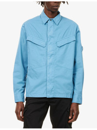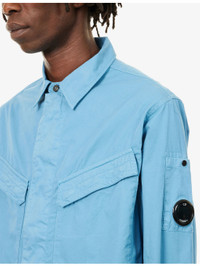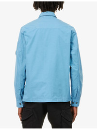 PRODUCT DETAILS - C.P. Company cotton overshirt - 100% cotton - Concealed zip and press-stud fastening at front - Classic collar, long sleeves, buttoned cuffs, two slanted flap patch pockets at chest, lens detailing at sleeve - Machine wash at 30°C - Made in Tunisia - Size medium: length 29.5in / 715m, chest 44.8in / 114cm - Model is 6ft 2in/1.88m and wears a size medium - Lightweight, non-stretch Ref: R04486694