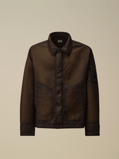 Jacket made of nylon felt with a double polyurethane coating. The unique look of this fabric is achieved through a dyeing process that highlights both the micropores and the intentional perforations in the polyurethane membranes. The jacket features C.P. Company’s iconic Lens, a classic collar with a snap placket, a hidden two-way full zip fastening, and side pockets. Garment dyed and anti-drop treated. Regular fit. - Classic collar with snap placket - Hidden two-way full zip fastening with flap snap closure - Side pockets - Lens detail - Cuffs with internal elastic gaiter - Adjustable drawstring hem - Garment dyed - Regular fit CARE & COMPOSITION Care - Wash max 30°C - Very mild process - Do not bleach - Do not tumble dry - Ironing maximum temperature 110°C - without steam - Do not dry clean - Line dry in the shade - Wash separately - Wash inside out - Remove detachable accessories before washing Composition - External fabric: 100% Polyamide / Nylon - Lining: 100% Polyamide / Nylon - Coating: 100% Polyurethanic resin SIZE & FITTING - Fits true to size, take your normal size - Model is 186 cm-6' 1" / 98-103 cm chest and is wearing a size L PRODUCT PASSPORT PRODUCT - Weaving: Italy - Dyeing: Italy - Confection: Romania - Releases plastic microfibers into the environment during washing PACKAGING - Minimum percentage of recycled materials 70%